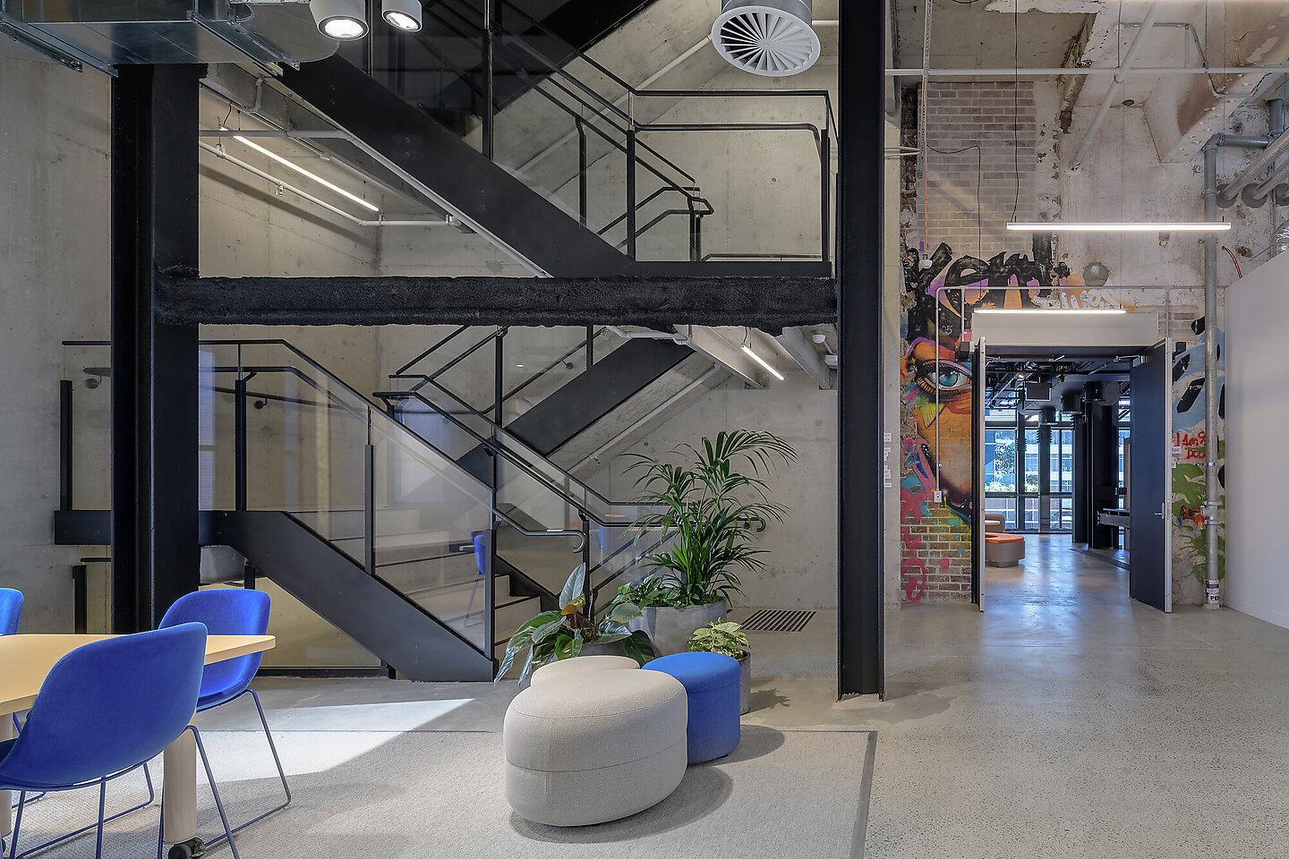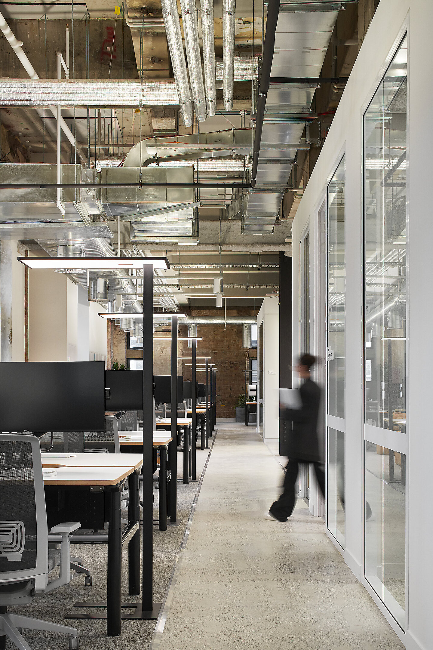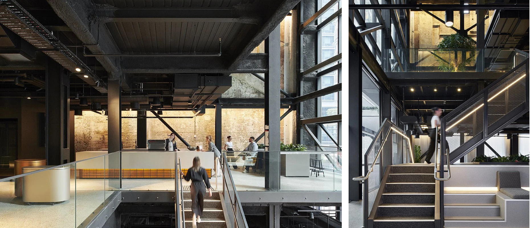 该办公空间横跨三层楼面,完美融合了现代设计与建筑遗产底蕴。建筑主体改造由Tzannes建筑事务所主导,室内办公空间设计则由The Studio* Collaborative操刀,整个空间旨在满足当前及未来团队需求,激发创新活力。