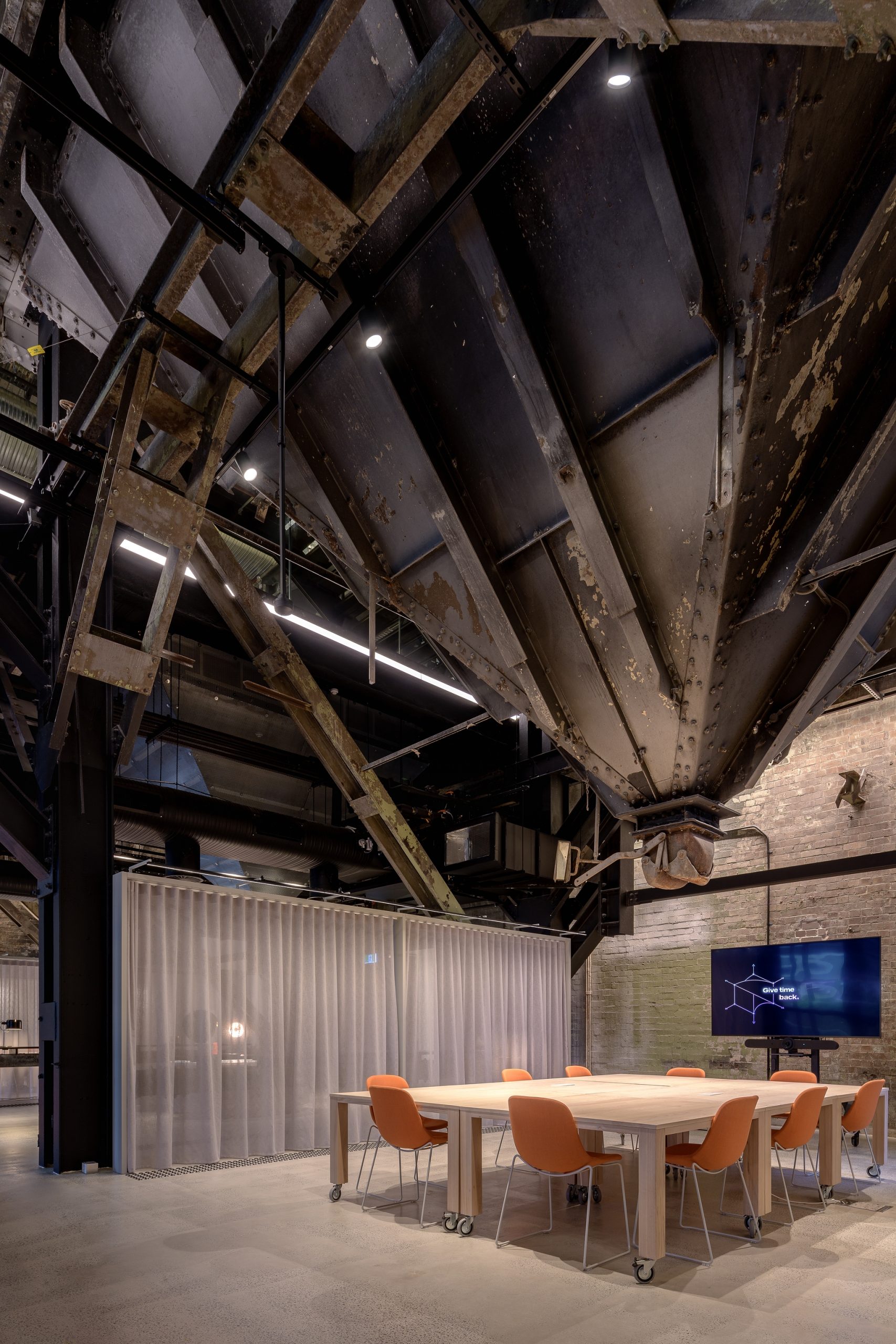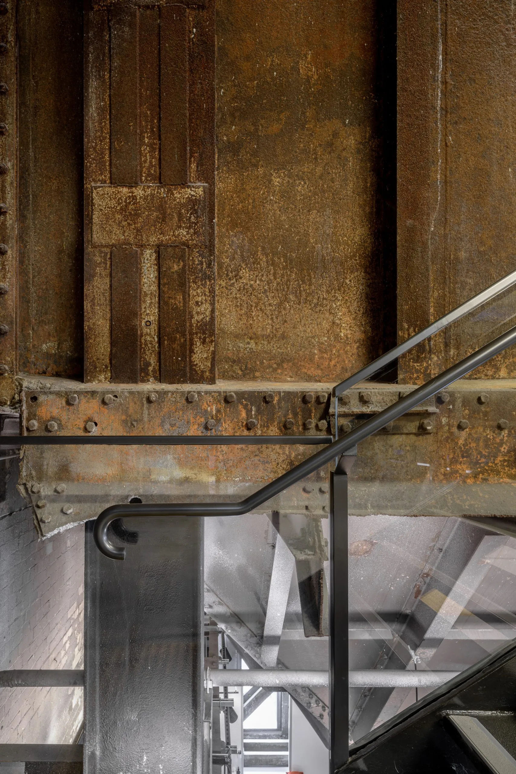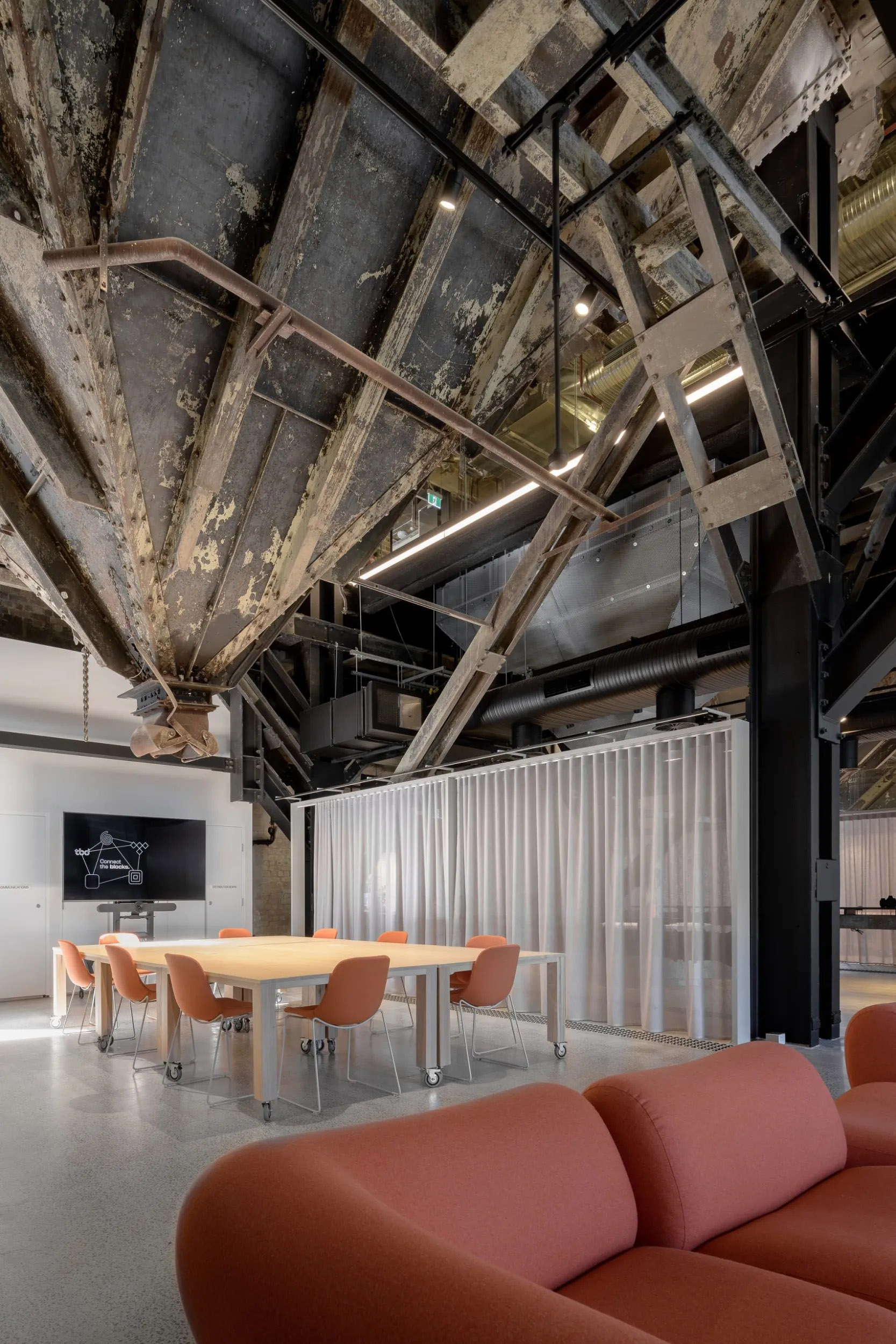 工程严格遵循专业保护流程,包括历史构件的拆卸、异地修复和最终复位安装等环节。项目汇集了多领域专业团队,从建筑设计到灯光设计,共同完成了这一工业遗产保护与再利用的典范之作。改造后的办公空间“既守护了工业遗产的灵魂,又创造了激发创新的工作环境”,尤其是联体楼梯装置的设计,成为平衡历史与现代的完美范例。