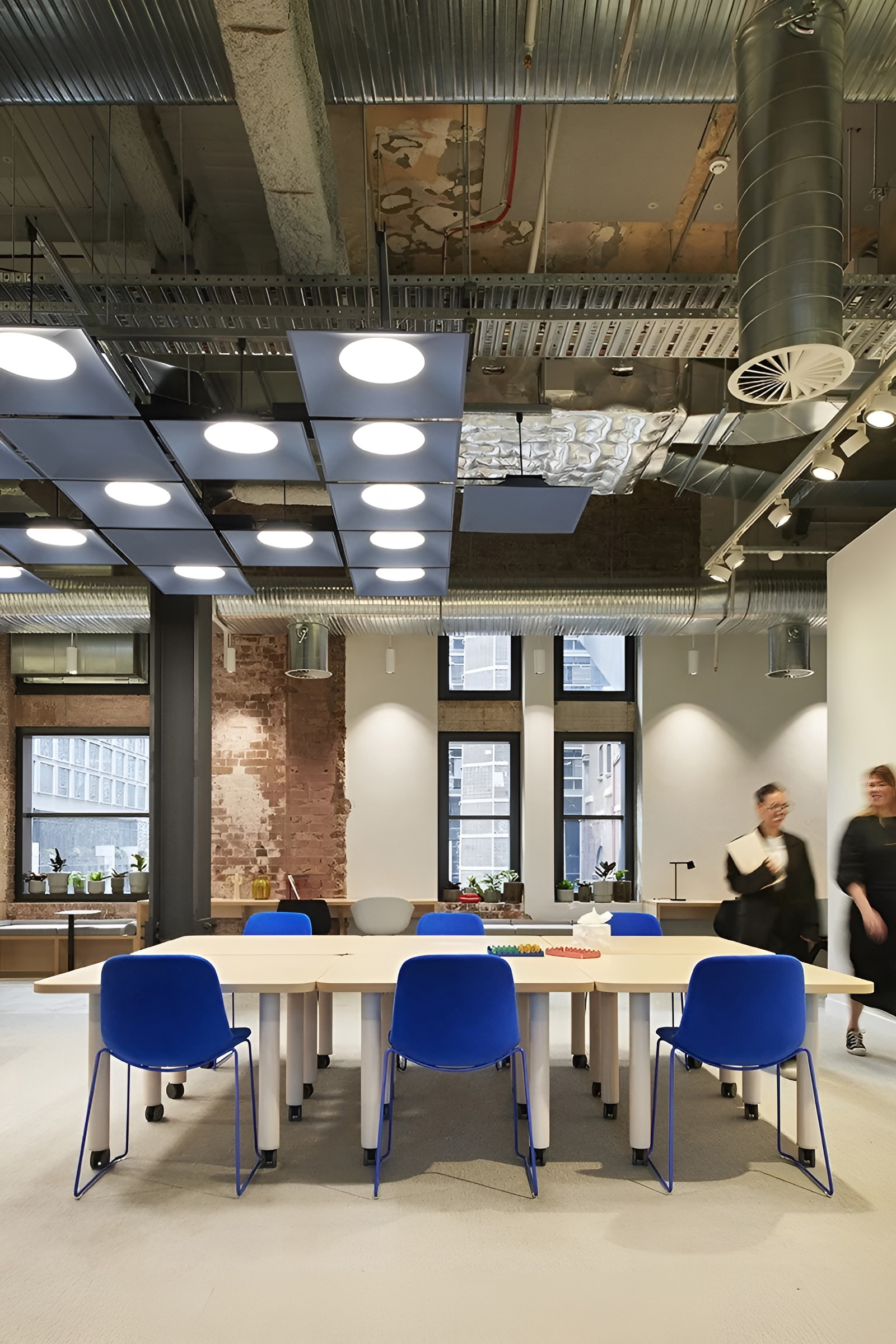 在设计新办公空间时,Block公司着力打造一个多功能且温馨的环境。空间内既设有符合人体工学的传统办公区,也配置了非正式工作区,以满足不同工作风格和需求。特别规划了两个开放式创意工坊、位于首层的大型活动区、培训教室、团队活动游戏室、母婴室以及冥想休息室,全方位支持员工福祉。