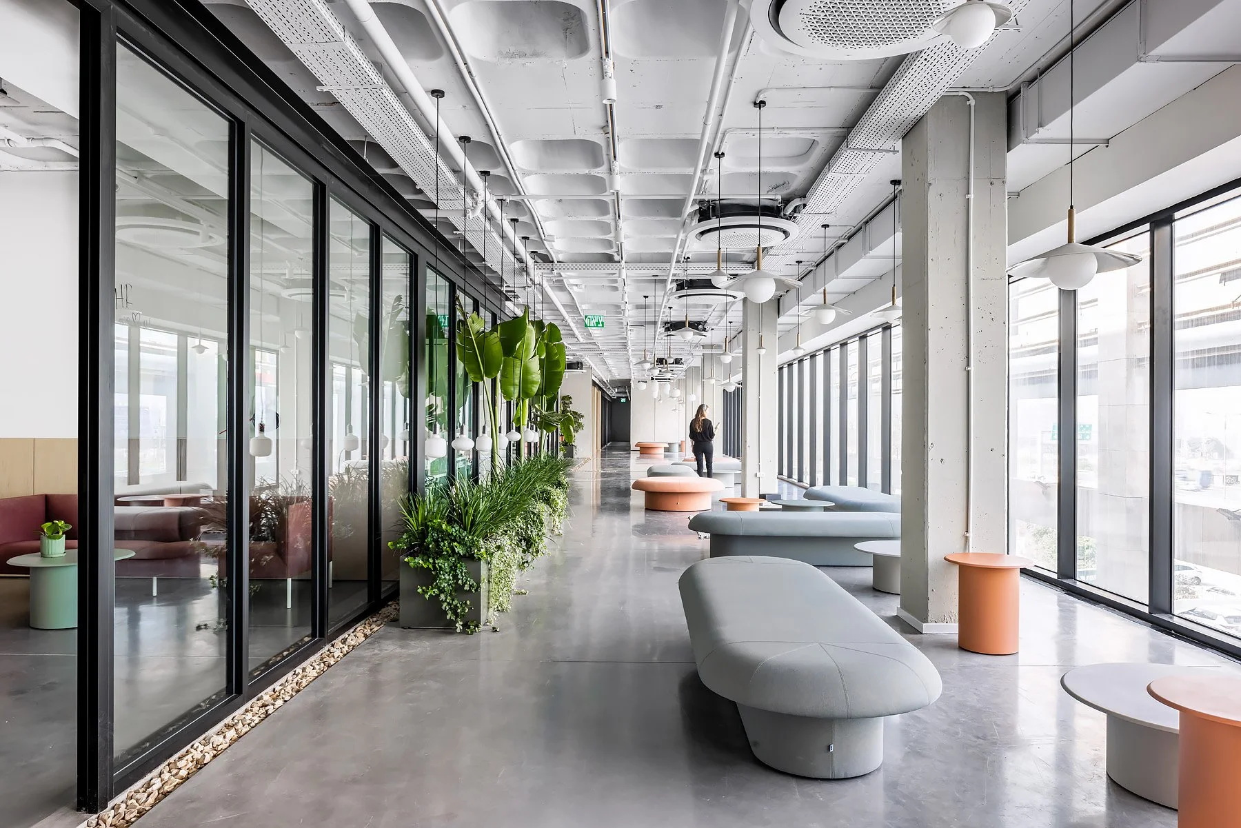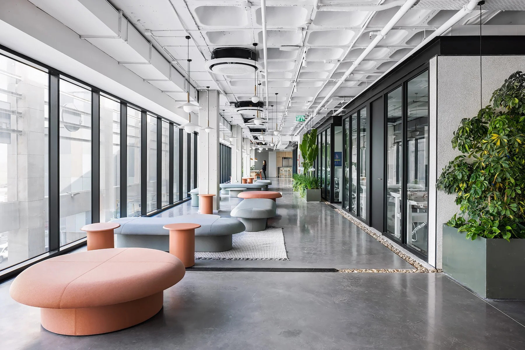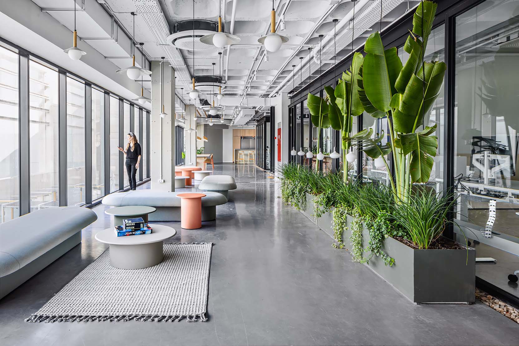 该空间既要能满足公司持续发展的需求,又要配得上企业的规模;同时Wix也坚决不希望建成那种员工整天只能见到本团队同事的传统办公楼——他们需要创造大量不同团队间自发相遇和交流的机会,以及非正式的社交空间。这种互动理念早已深深植根于Wix的企业文化之中。