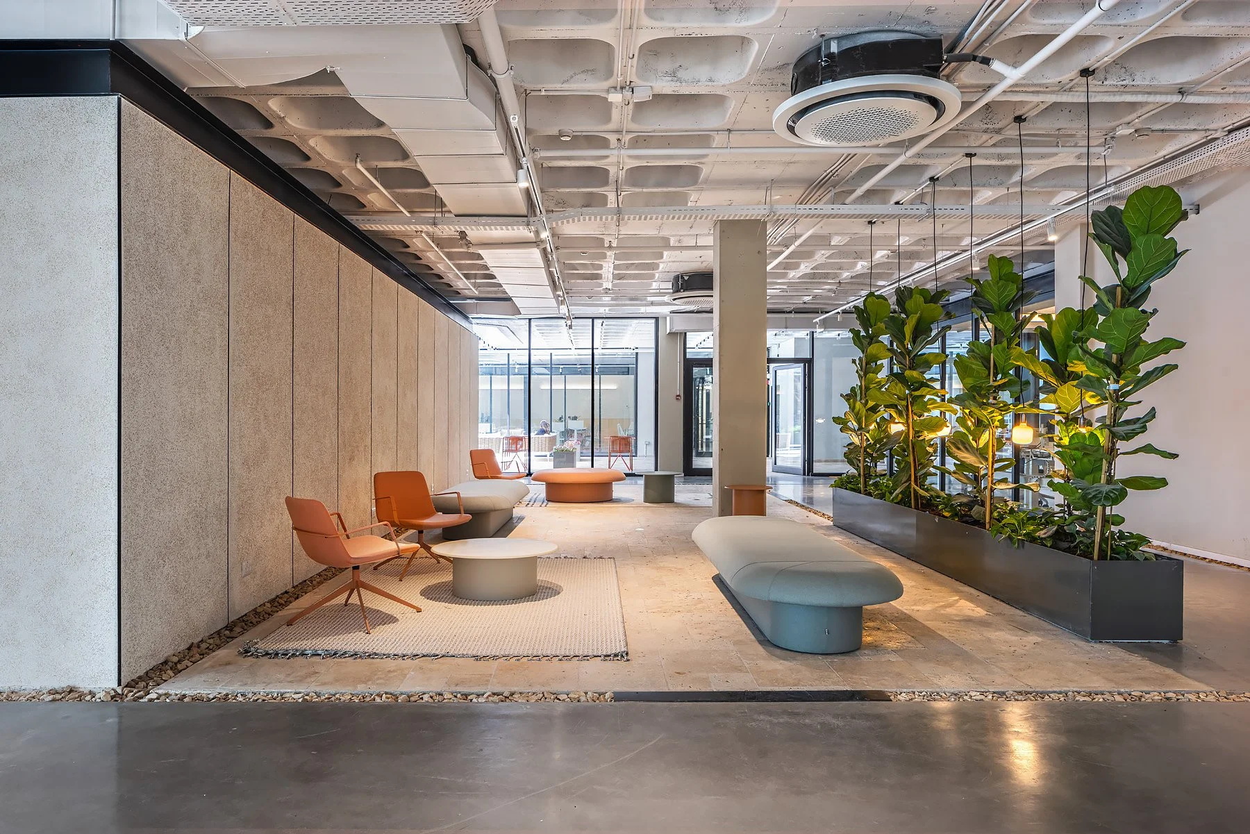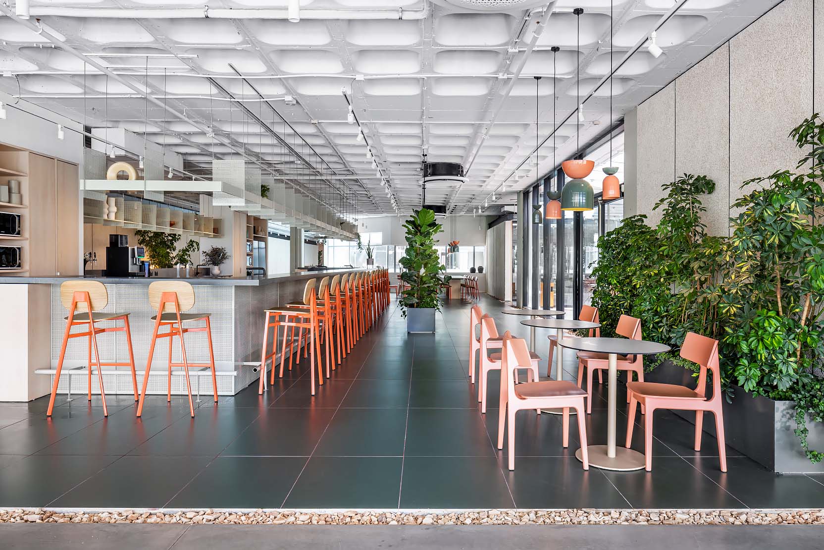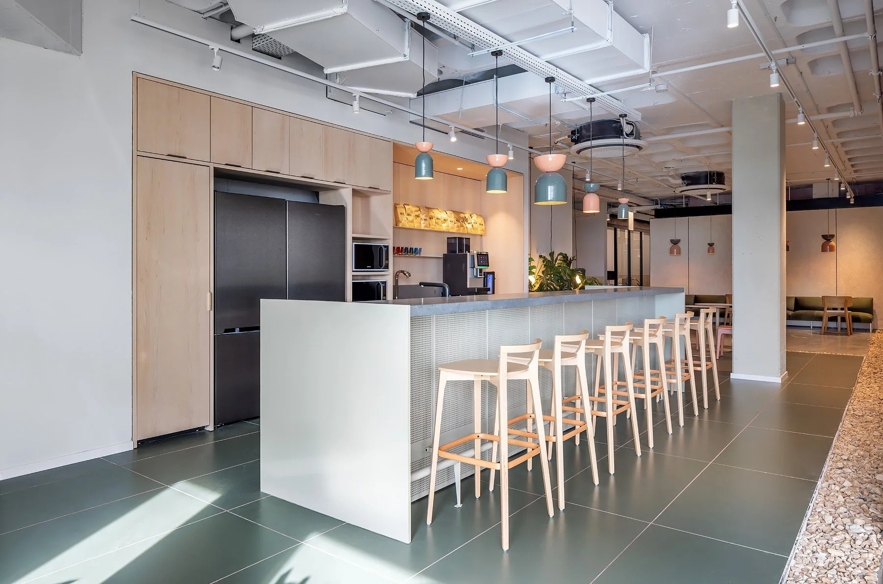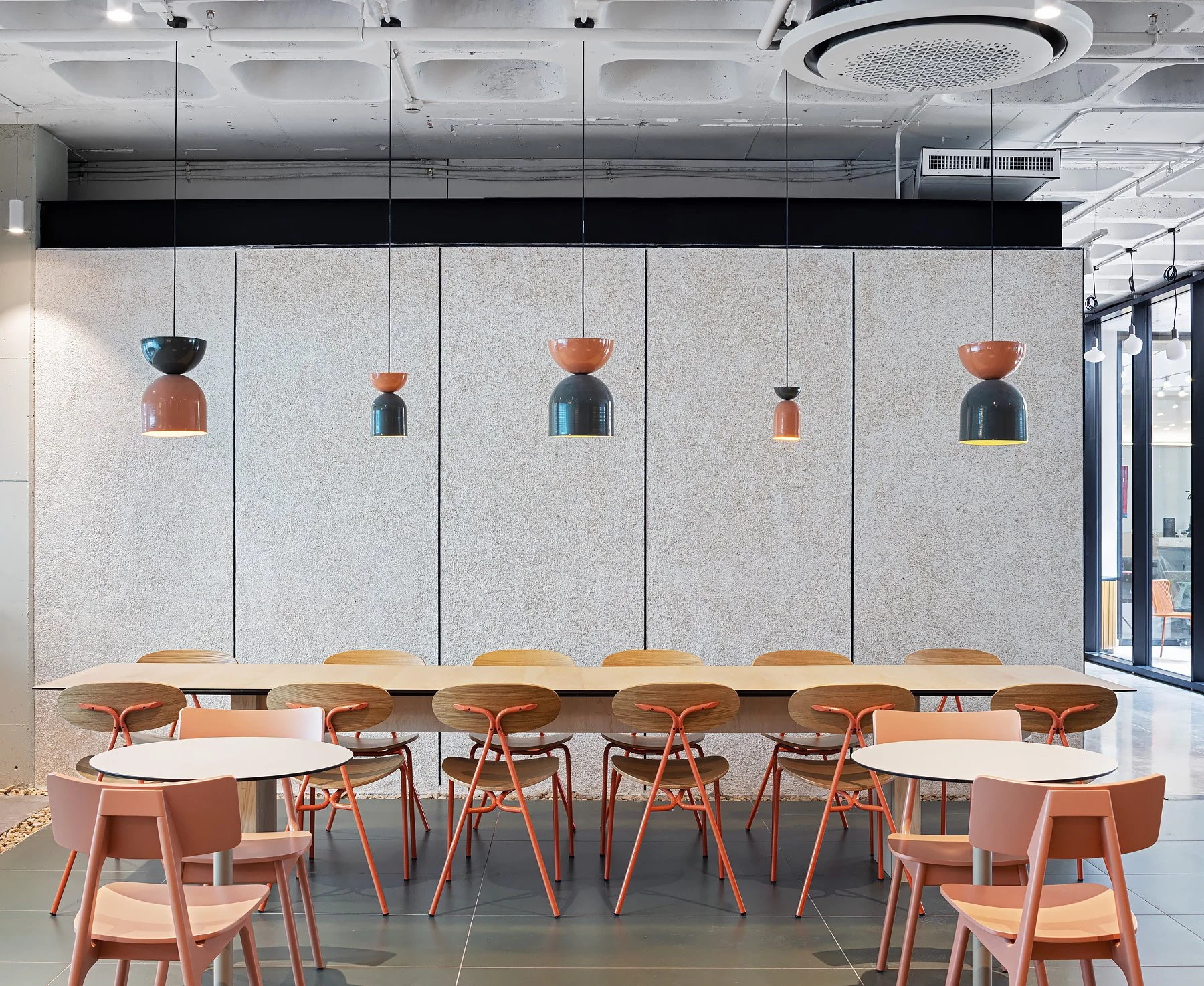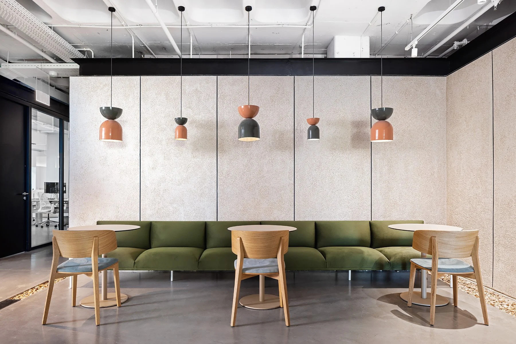 设计团队首先对Wix的员工——从新入职员工到高级管理人员——进行了访谈,以了解客户的真实需求。通过对Wix的运营模式展开深入研究,确保空间能为员工提供最佳体验:非正式会议的发生频率是多少?平均会议规模有多大?员工拉把椅子加入同事讨论的场景有多常见?这些数据成为了该空间几乎所有重大决策的基石。