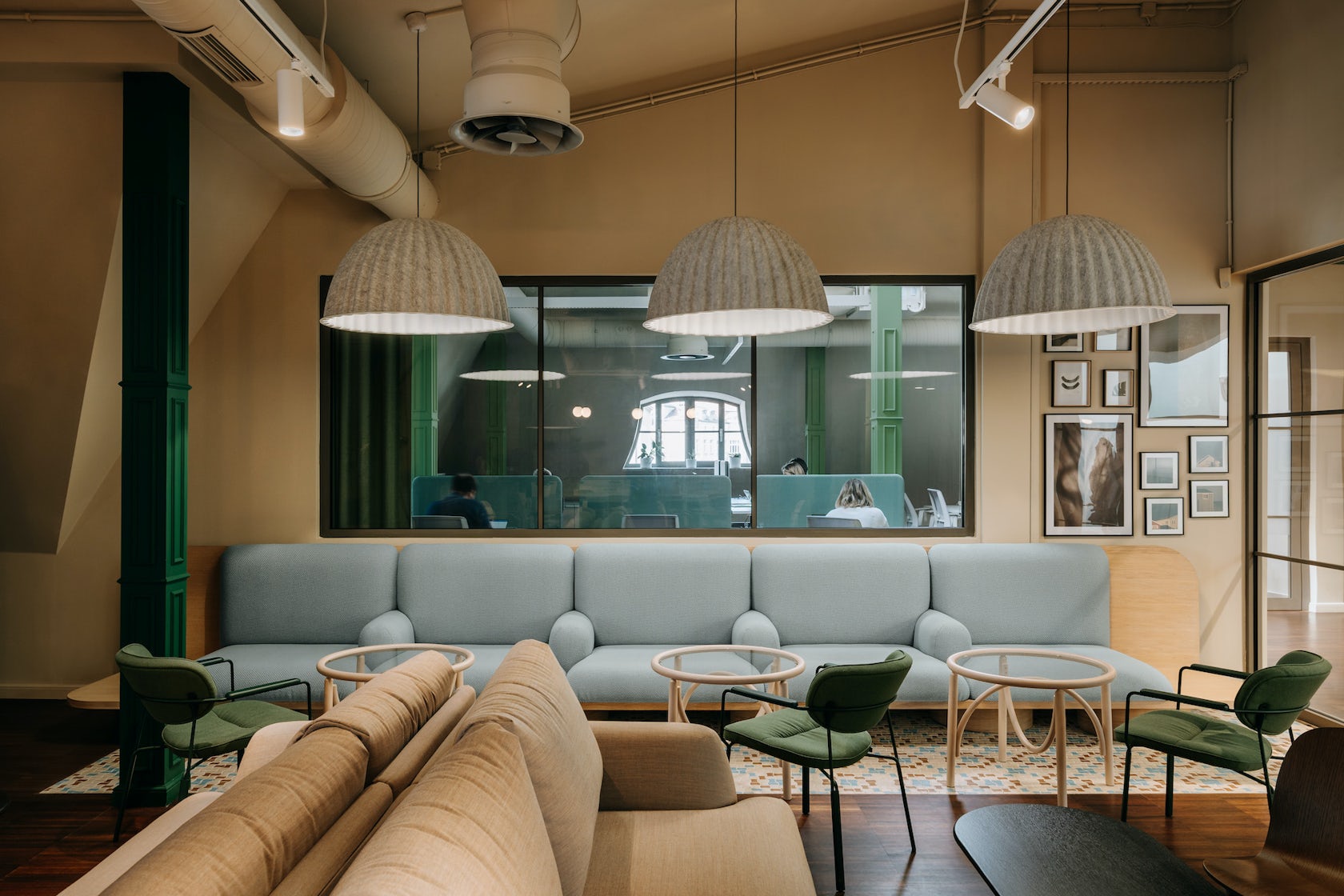 俯瞰地标性约维塔大楼与壮丽波罗海的大幅窗景,配以天空蓝的高挑天花板,以及极具前瞻性的可持续设计哲学,设计团队构筑了波兹南独一无二的联合办公场域。