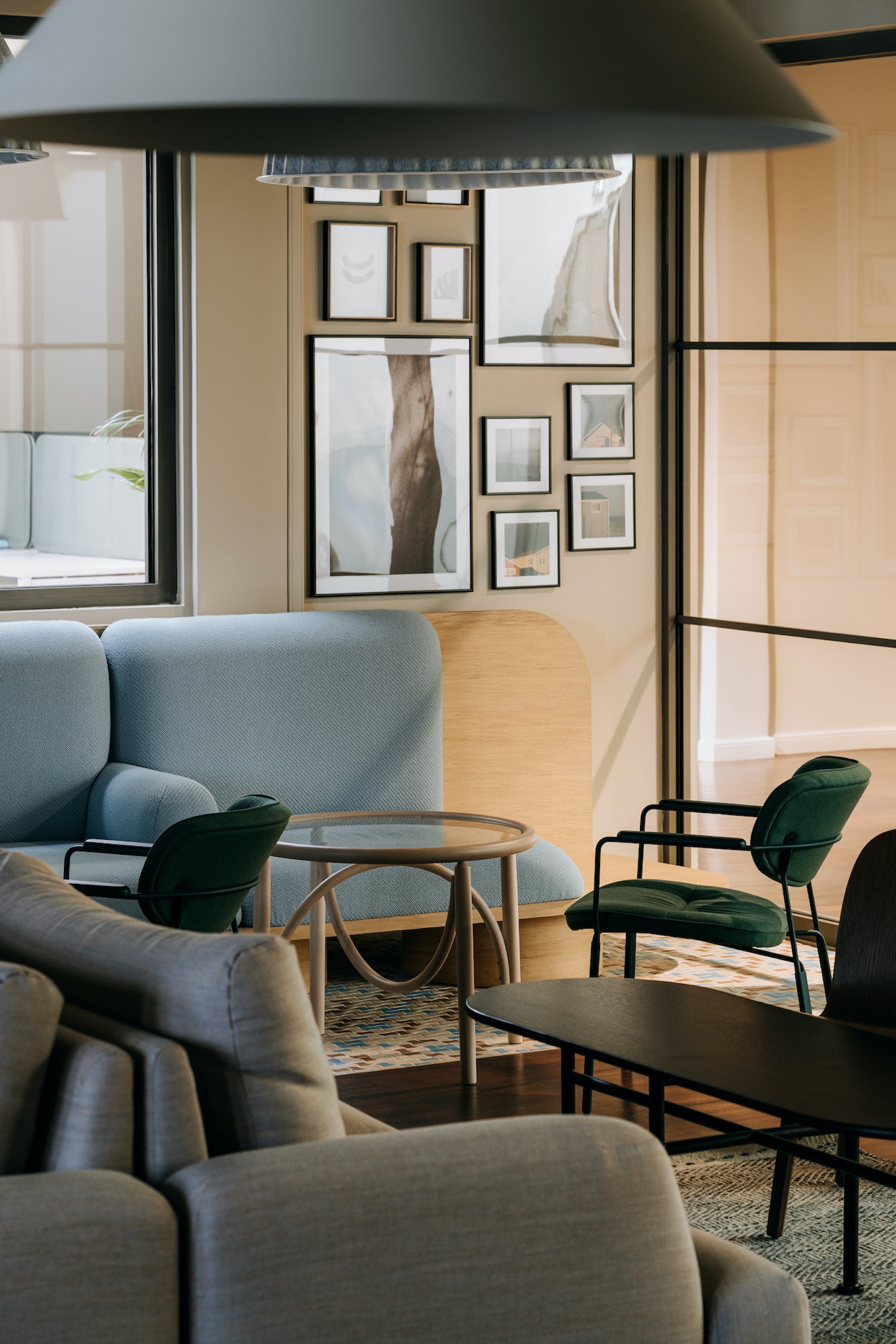 在社交区域,设计将部分拼花地板替换为手工镶嵌马赛克,这些材料来自仅900米外的制造工坊。会议室则摒弃了木地板——鉴于声学效果在此至关重要,转而采用可循环地毯:当地毯结束使用周期后,制造商将回收并将其再造为品质如新的产品。