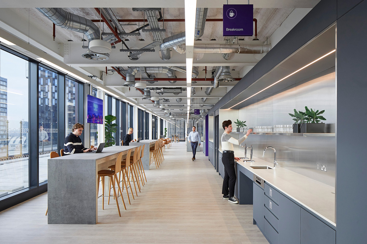 核心特色包括促进“携手共创精彩”理念的社交枢纽与天空露台,空间设计融合曼城本地元素,既呼应了充满活力的社区特征,又构建出契合Roku运营理念与企业文化的工作场所。该空间的成功运营促使Roku进一步扩展,继续与HLW建筑设计事务所合作升级完善其设施。