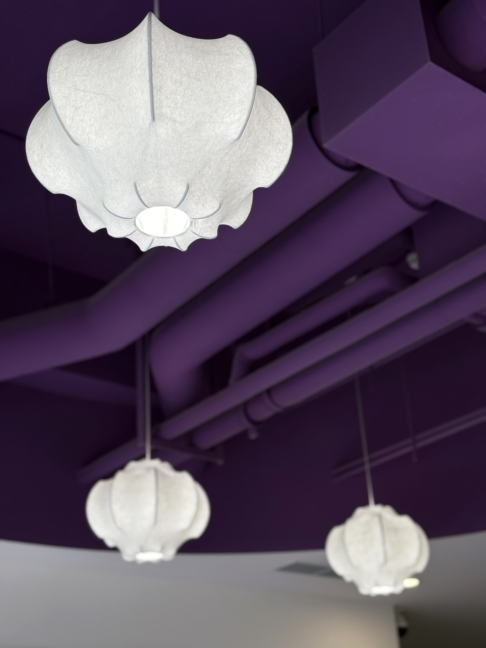 绿洲茶水区:临窗吧台配高脚椅,俯瞰天府大道车流霓虹。紫调茶水区:紫调软包卡座+圆形餐桌,阳光与城市天际线在此交融。从咖啡洽谈到团队脑暴,满足各种休闲场景切换。
