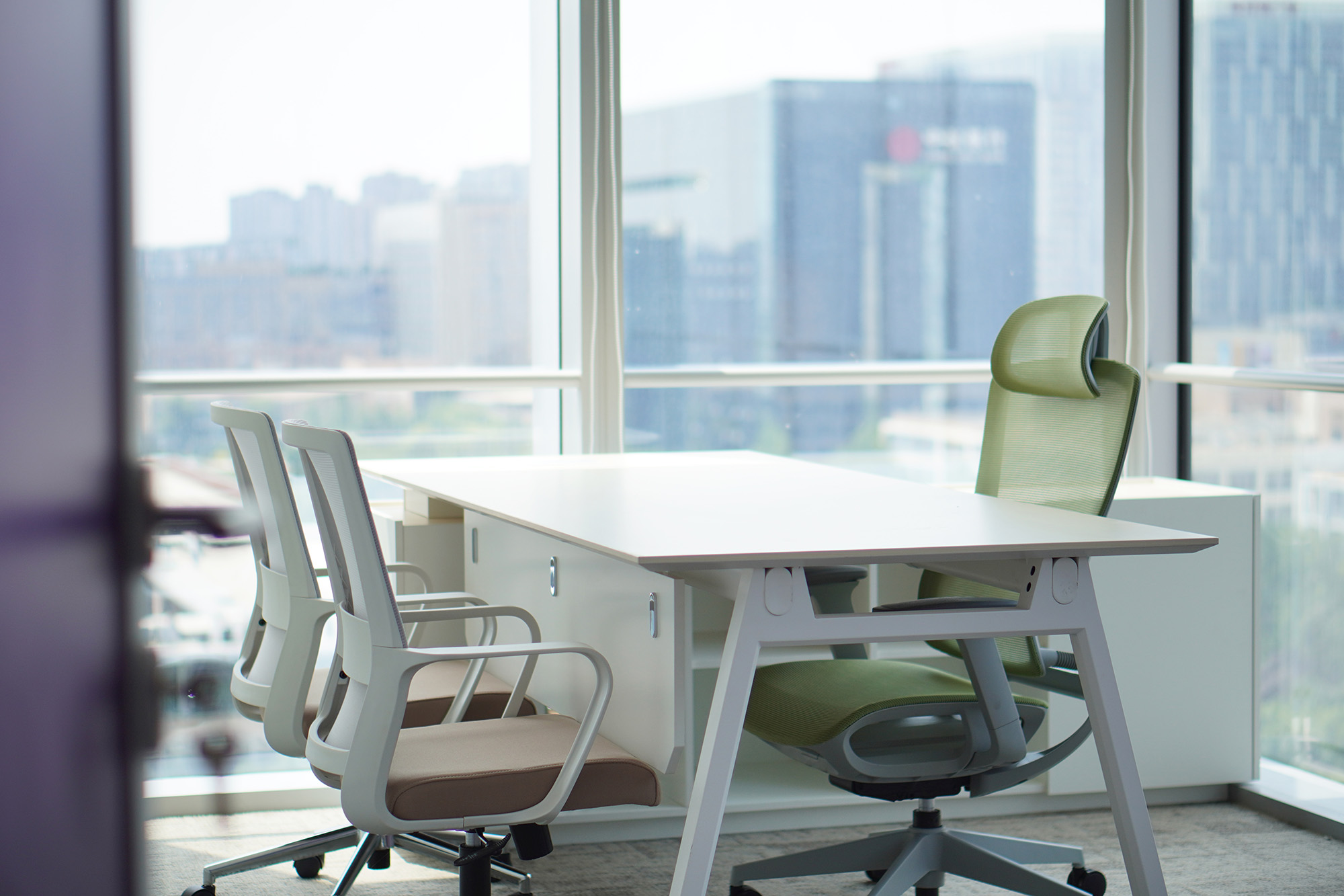告别刻板商务风,以 「舒适即生产力」 重构私享空间:弧形沙发区营造会客亲和力;撞色墙面提升专注度;人体工学家具系统适配多元办公姿态。