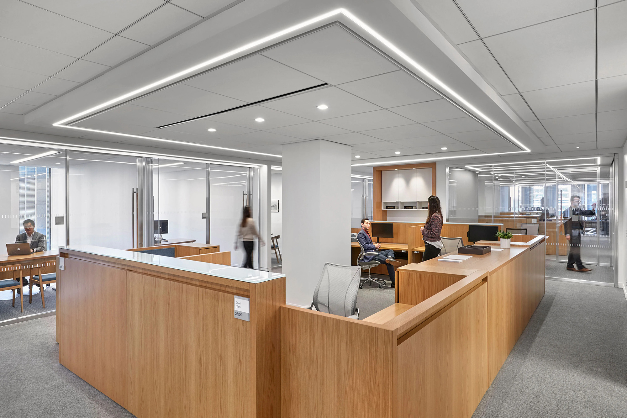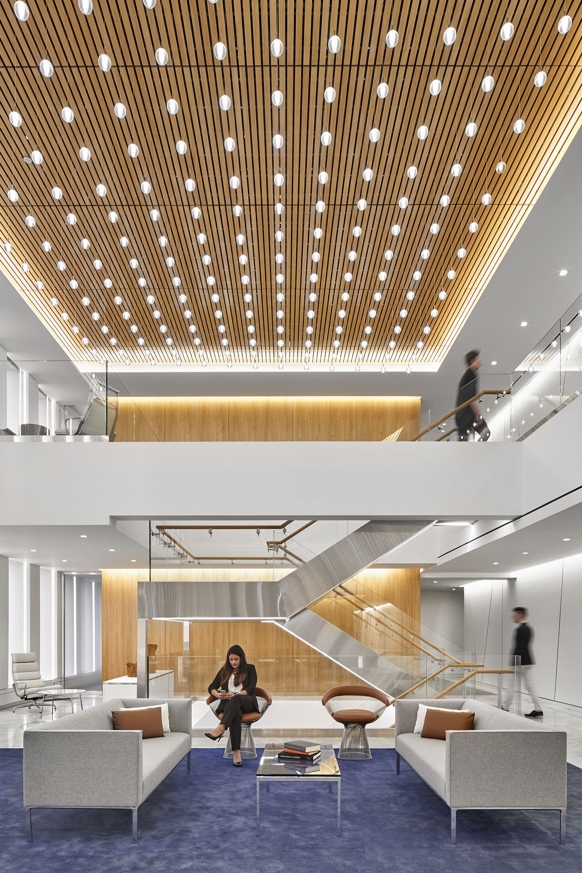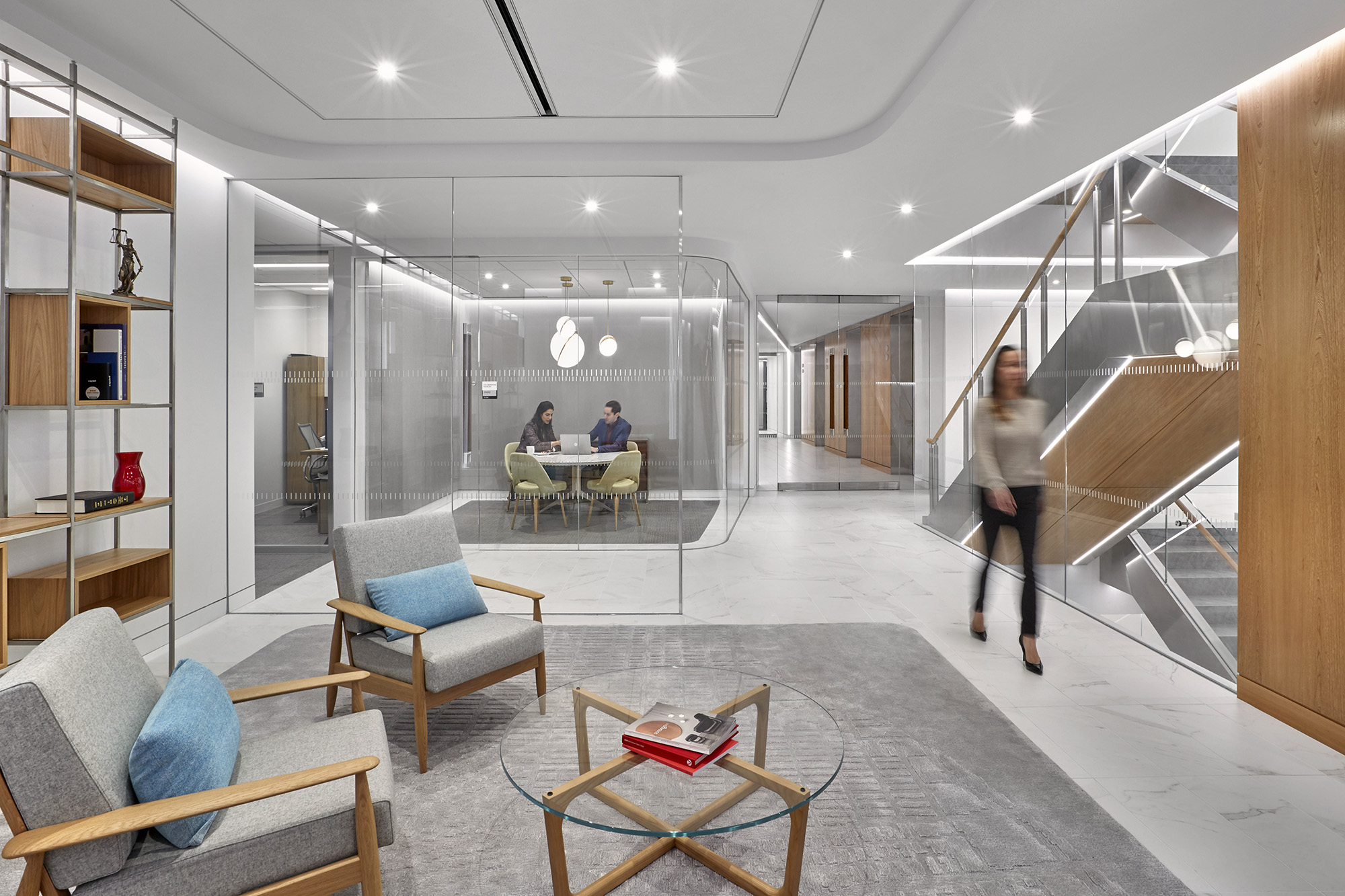 这家律所原有的办公室分散在六个缺乏连贯性的楼层中,且设计风格不尽统一。通过全盘拆除重建,新的设计规划将各业务部门整合到相邻的楼层中,采用统一的中世纪现代风格设计语言,并引入更多自然光照,搭配明亮现代的饰面材质与人机工学家具,实现了空间美学与功能性的完美统一。