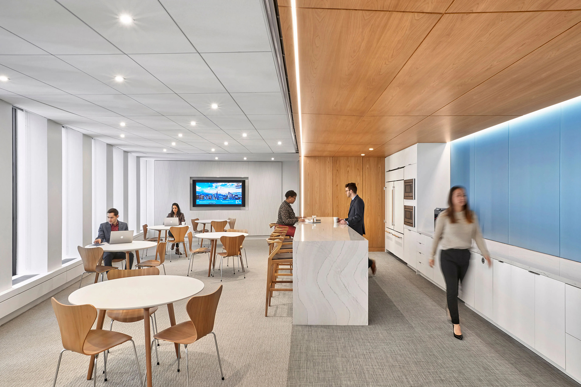 挑高两层的开阔接待区迎接着每位访客,并引导大家通向配备顶尖科技的会议中心。这个多功能会议中心坐拥曼哈顿中城全景视野,可轻松切换为培训与活动场地,配备全套沉浸式远程会议设备,更设有专属接待套间以供来宾使用。