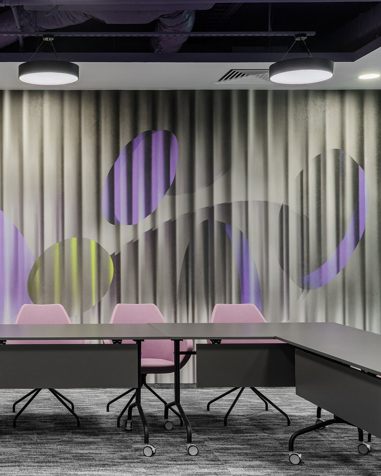 K2 Design Lab为银行打造的布加勒斯特办公室,巧妙融合两家独立机构的各自需求,通过灵活布局构建出有机统一的整体。这一设计不仅促进团队协作、彰显可持续理念,更将人性化关怀贯穿每个细节。