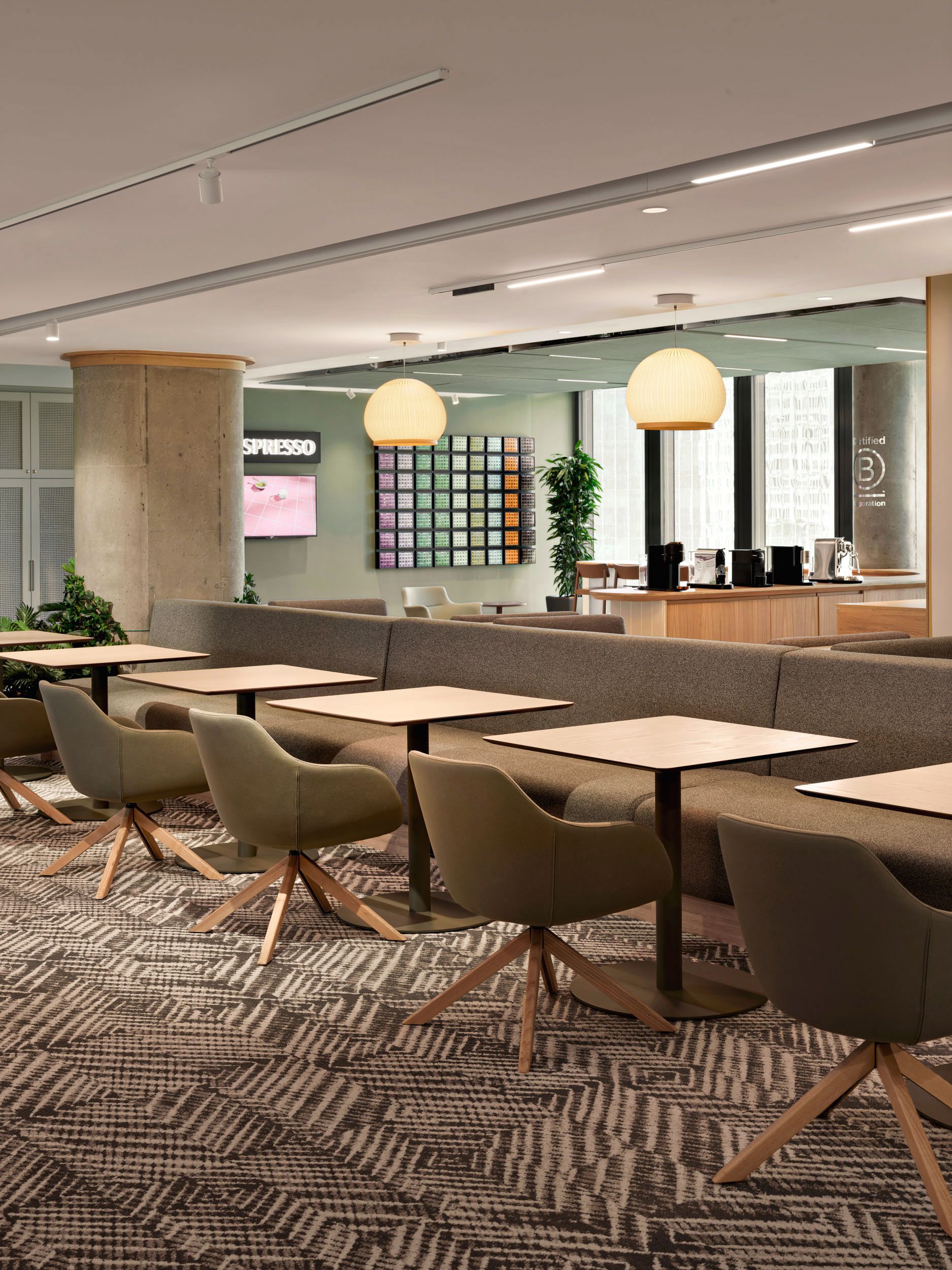 一套“全球本土化”的设计语言,巧妙衔接了全球标准与在地文化,营造出包容共融、以人为本的环境,让每位成员都感受到被重视。受可可、牛奶与咖啡的启发,材质的叙事性建立起与雀巢产品的情感联结;而纹理、图形与艺术装置的运用,则将品牌传承融入空间体验。这些原则共同作用,最终将办公场所转变为一个现代化的栖息地——在此,员工福祉、品牌身份与文化传承和谐交融。