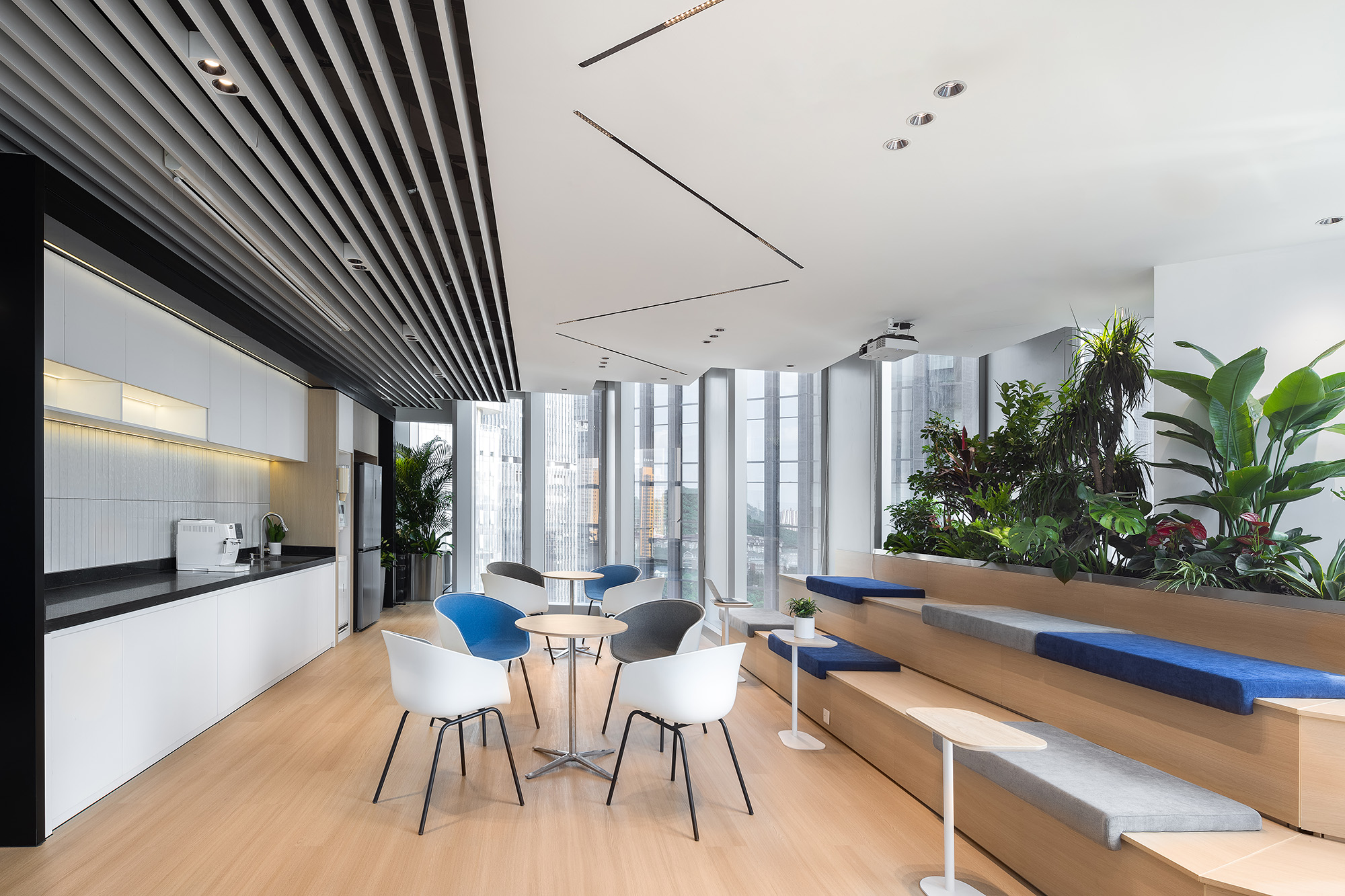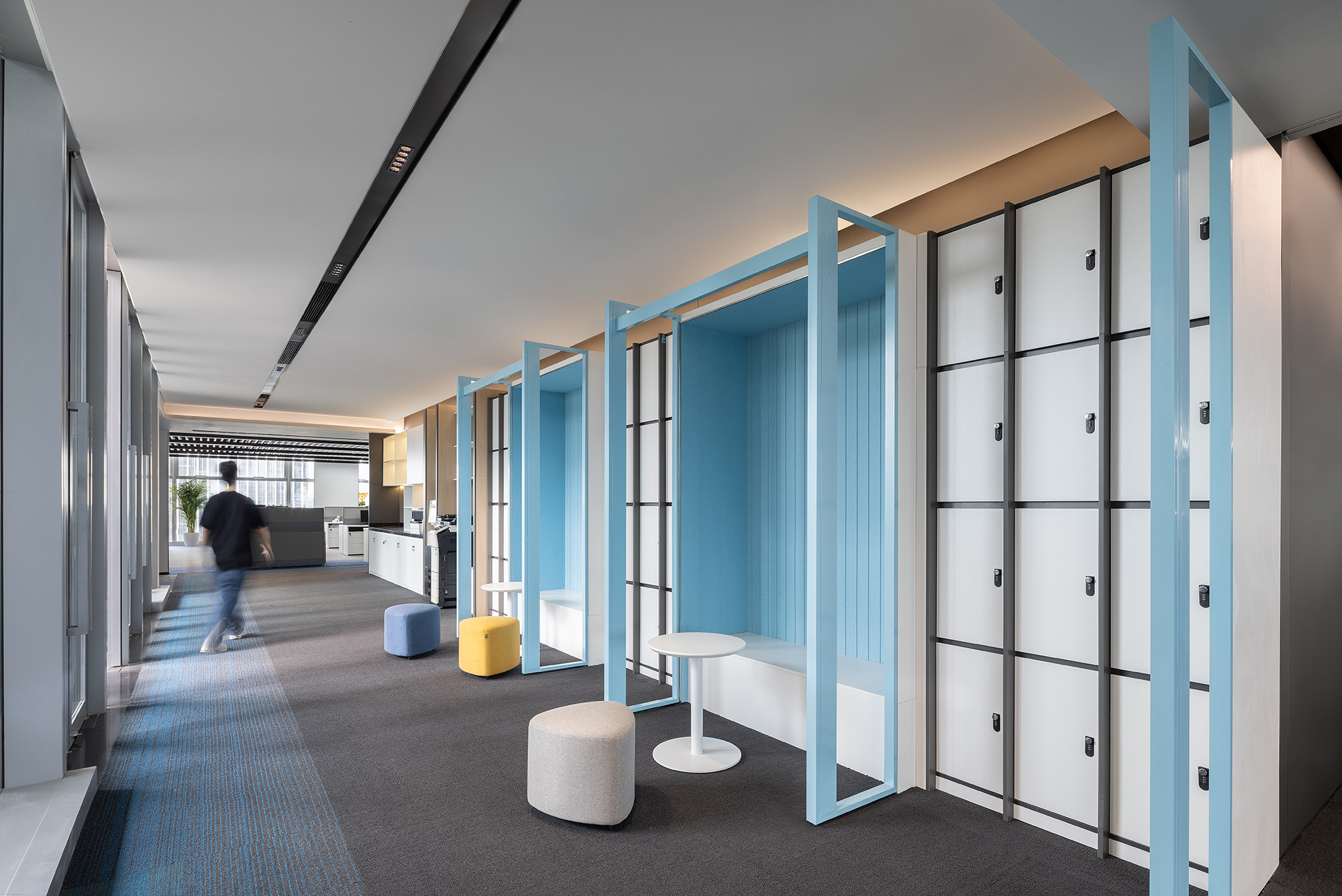纳芯微深圳办公空间由汇德绘设计团队打造。本案共享办公与半私密协作区,整体以灰、蓝、木色为主调,简洁理性又不失温度。