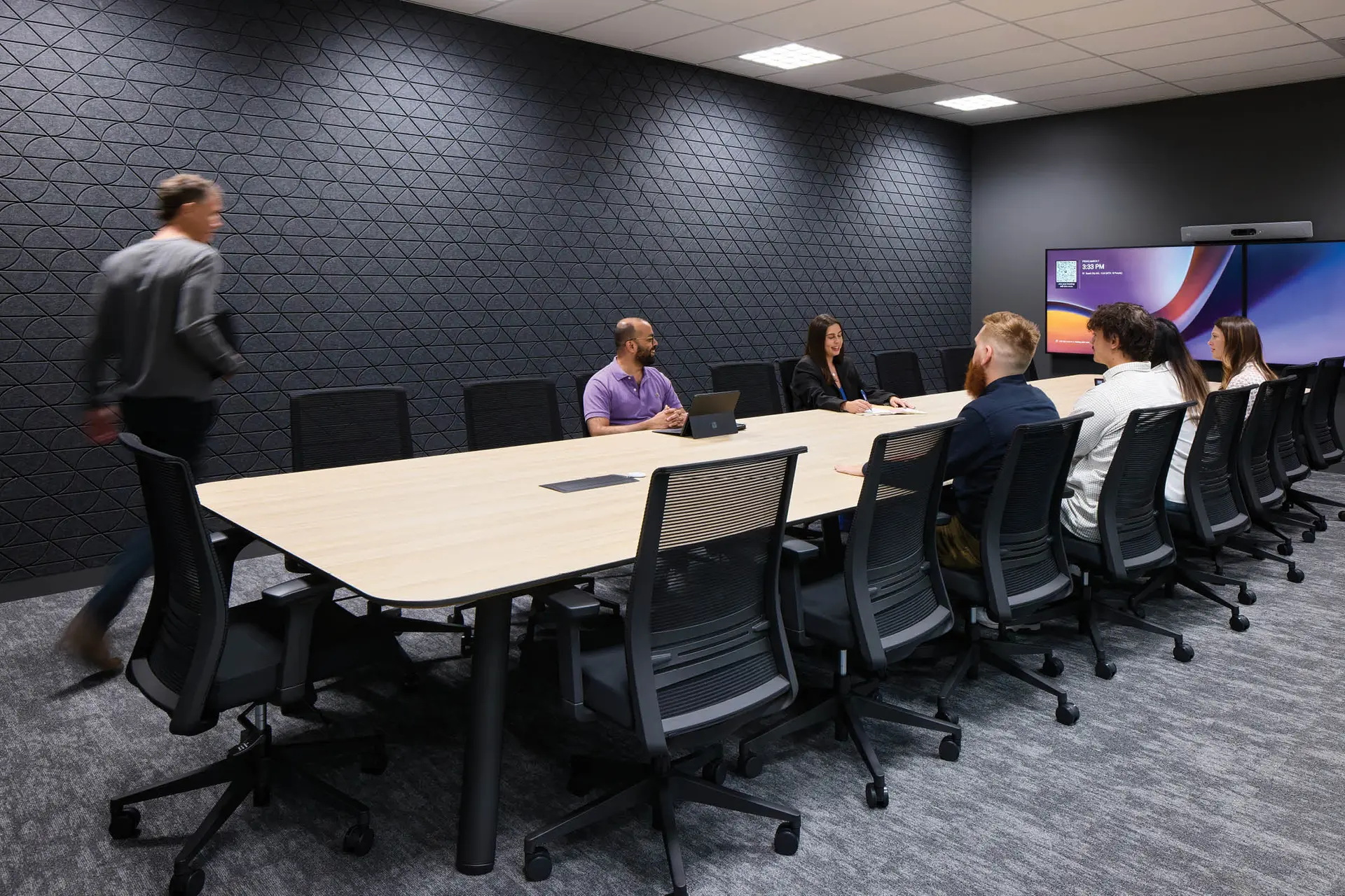 入口空间选用暖色调木材、大地色系元素与和谐配色组合,营造出温暖迎宾的氛围,为员工和客户构筑起情感联结。开放办公区则兼顾材质耐用性与现代设计语境,以持久性能支撑Spark不断演进的发展需求。