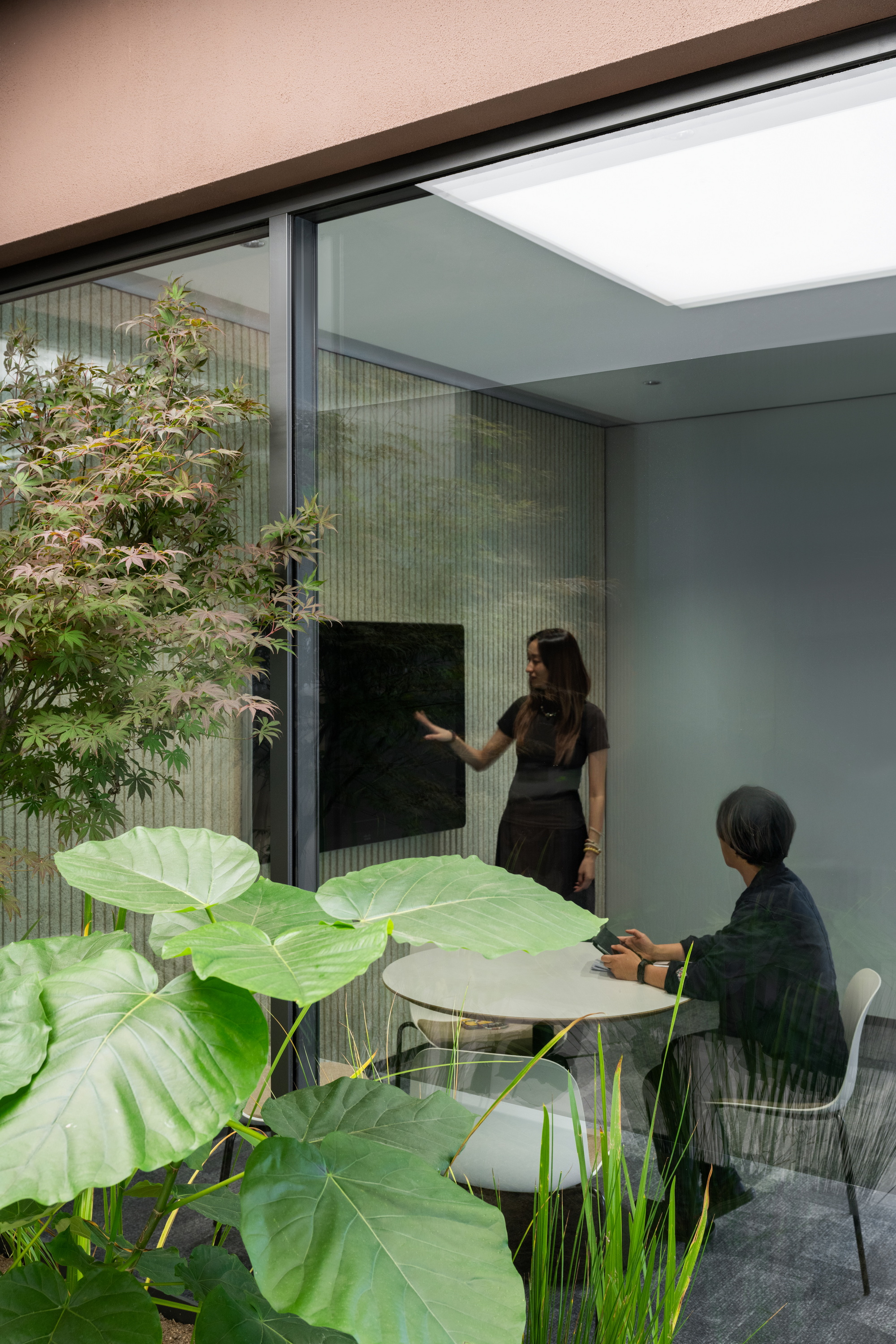 总部里的每个楼层均设有一个茶水间,为即时会议提供轻松的环境。茶水间的装修采用红砖、木漆或手工铺设的瓷砖,色调覆盖红色系、木色系和绿色系。这些空间为日常工作带来条理和温馨,既接地气,又令人感到亲切。