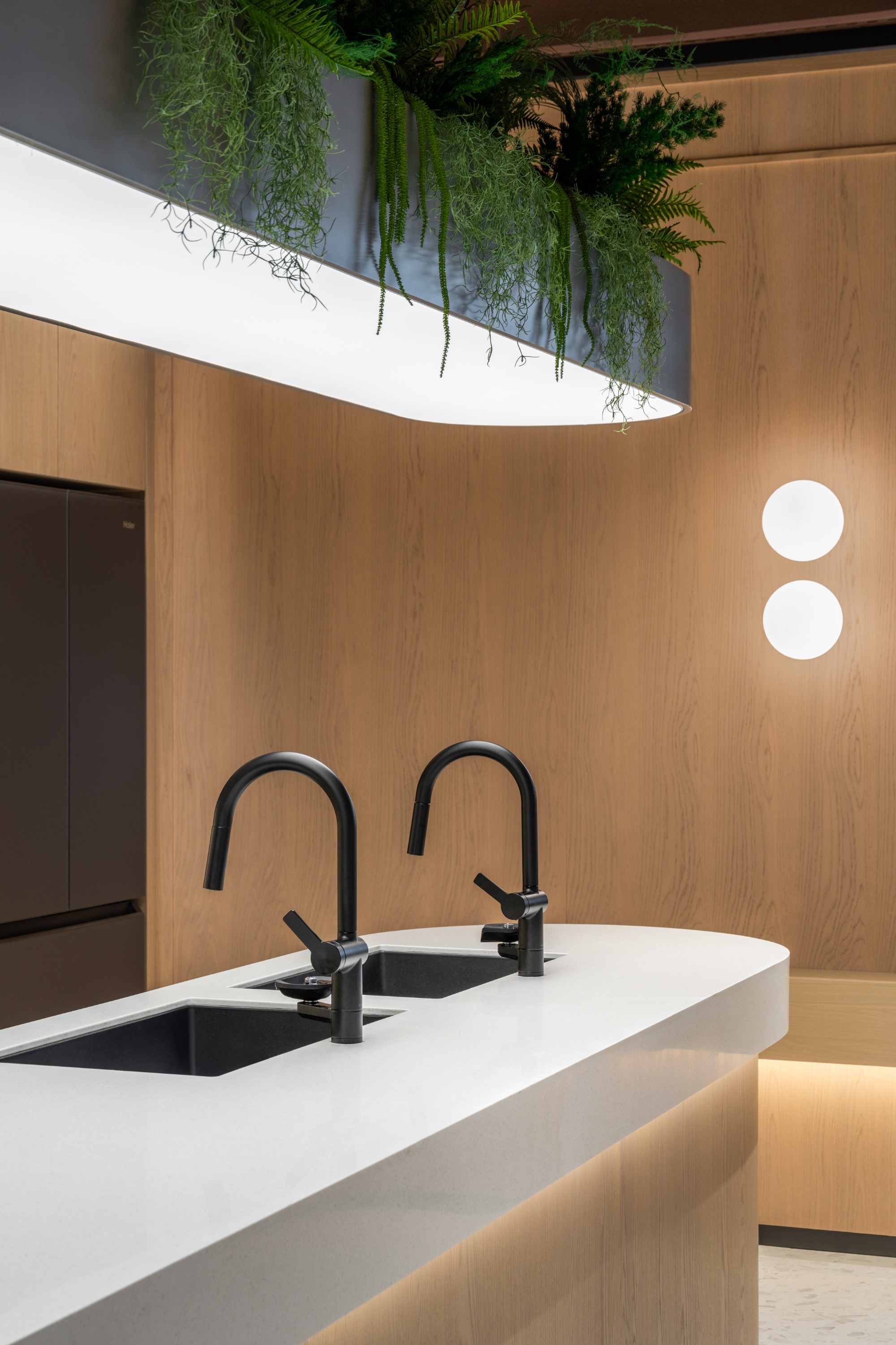 除此之外,社团团队另设了一个可以容纳更多人的Grand Pantry。它的空间灵活,便于按需调整,焕发集体能量。这个Grand Pantry有可折叠的屏幕,可推移的隔断墙和动态的天花板系统,可根据需要自由延展。作为整个总部的社交核心,这个多功能空间完美适配各类活动场景。从休闲午餐到品牌活动,皆可从容应对。