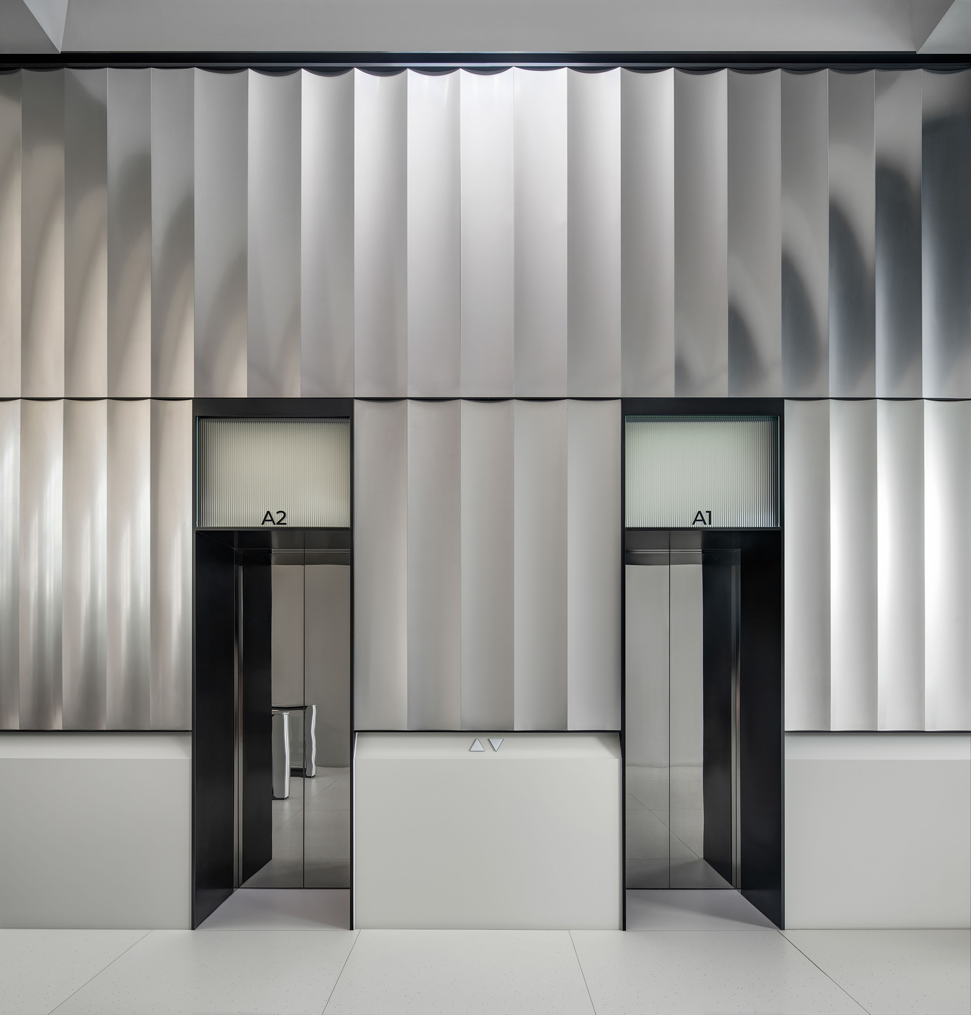 金属质感的外立面元素延续至室内,确保材料与比例的一致性与精度。定制化天花系统将照明、空气分配与声学控制整合于一体,使空间更简洁、灵活、易维护。