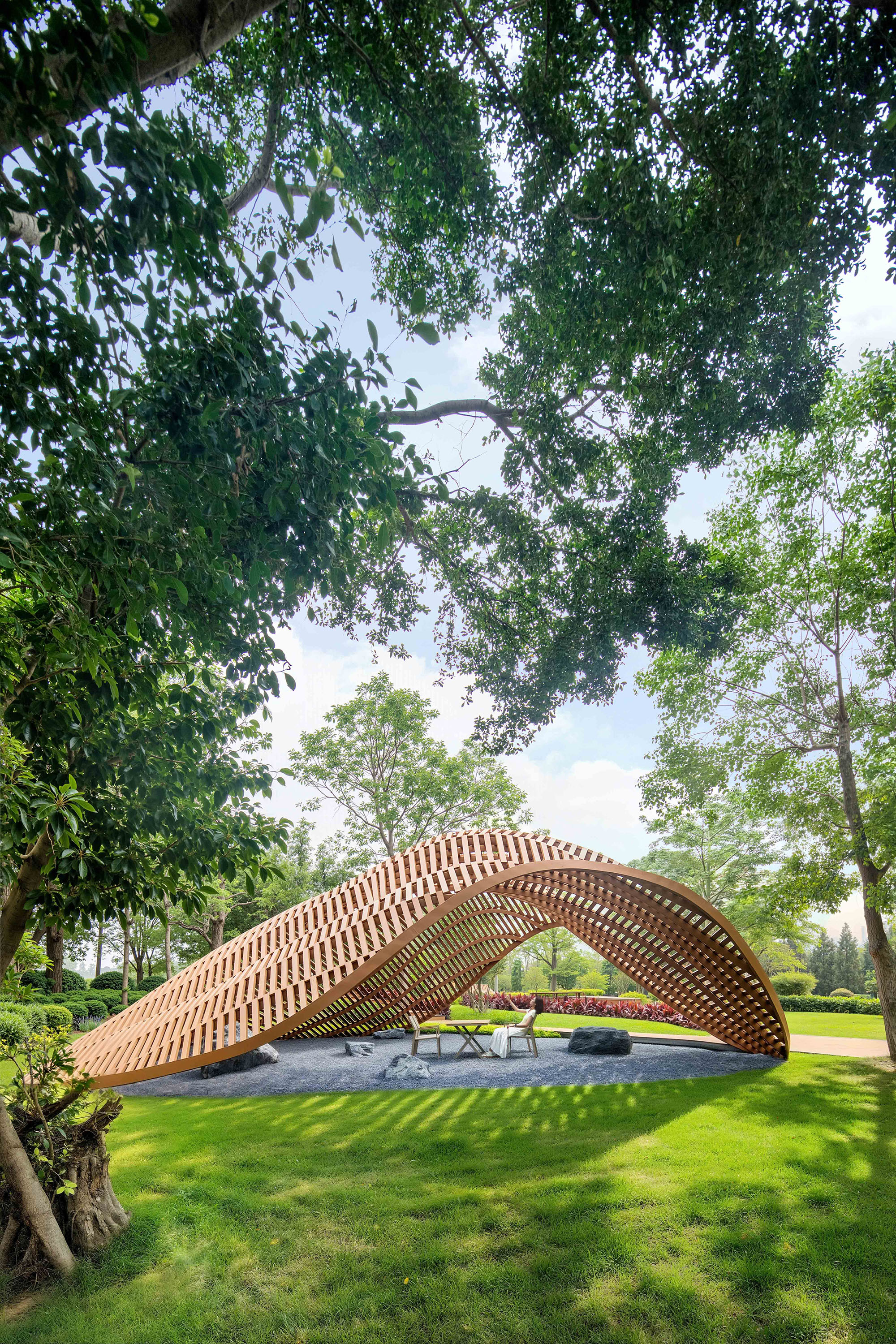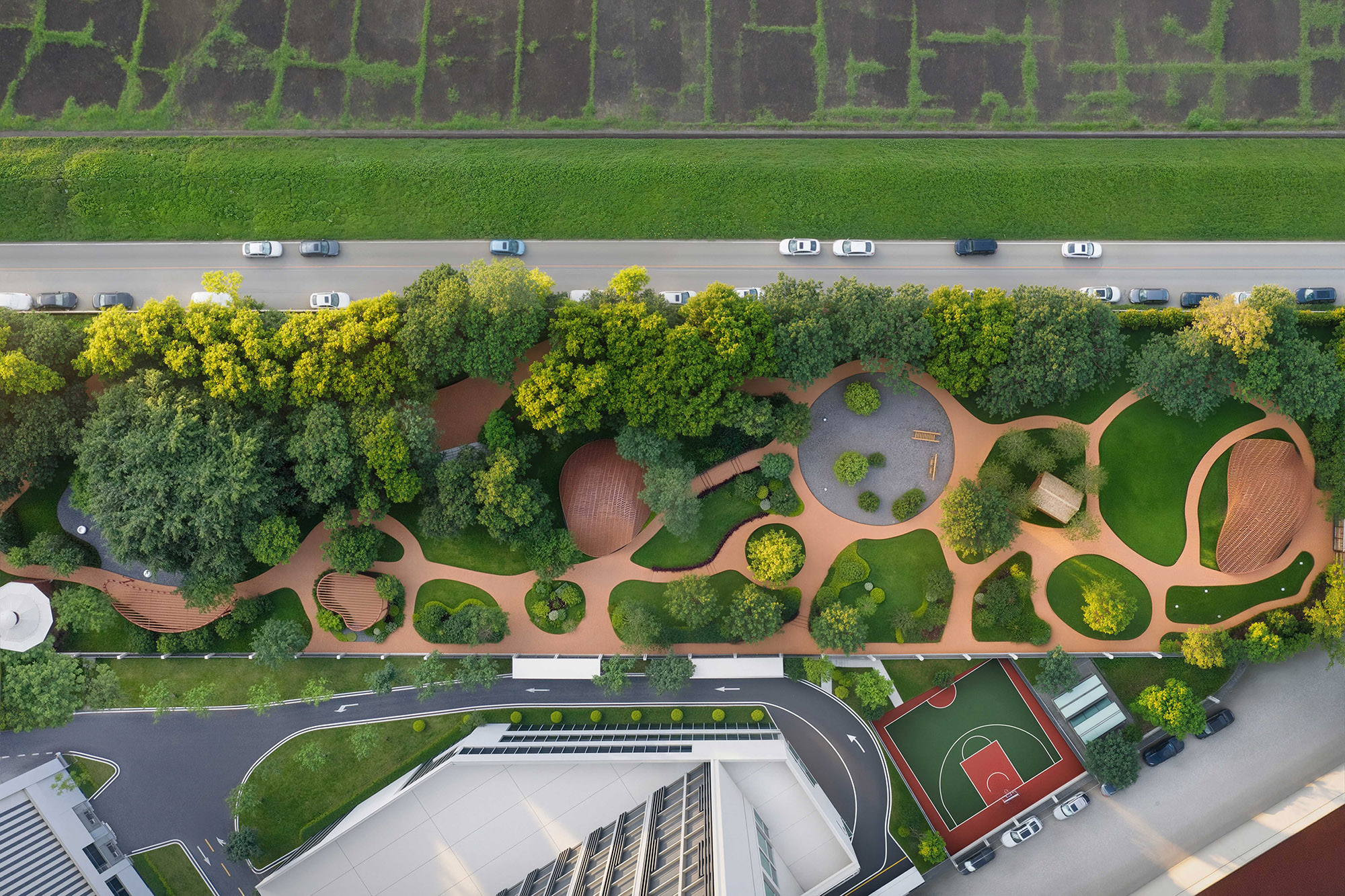 园区北侧被改造为“北公园”绿化区。生态花园、遮荫步道与本土植物共同营造出宁静的氛围,既支持生态系统的循环,为员工与访客提供亲近自然的场所,促进身心放松与社群连接。
