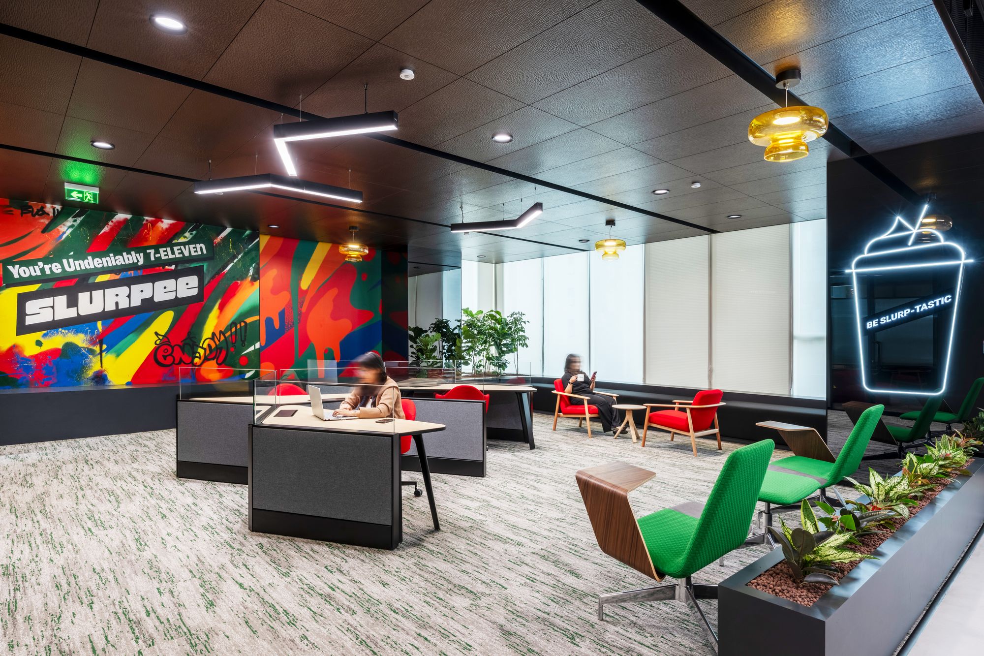 Zyeta设计团队打造的7-Eleven班加罗尔办公室以“城市游乐场”概念重塑企业空间,将高端设计与趣味元素相融合,通过沉浸式环境吸引顶尖人才、激活品牌文化。