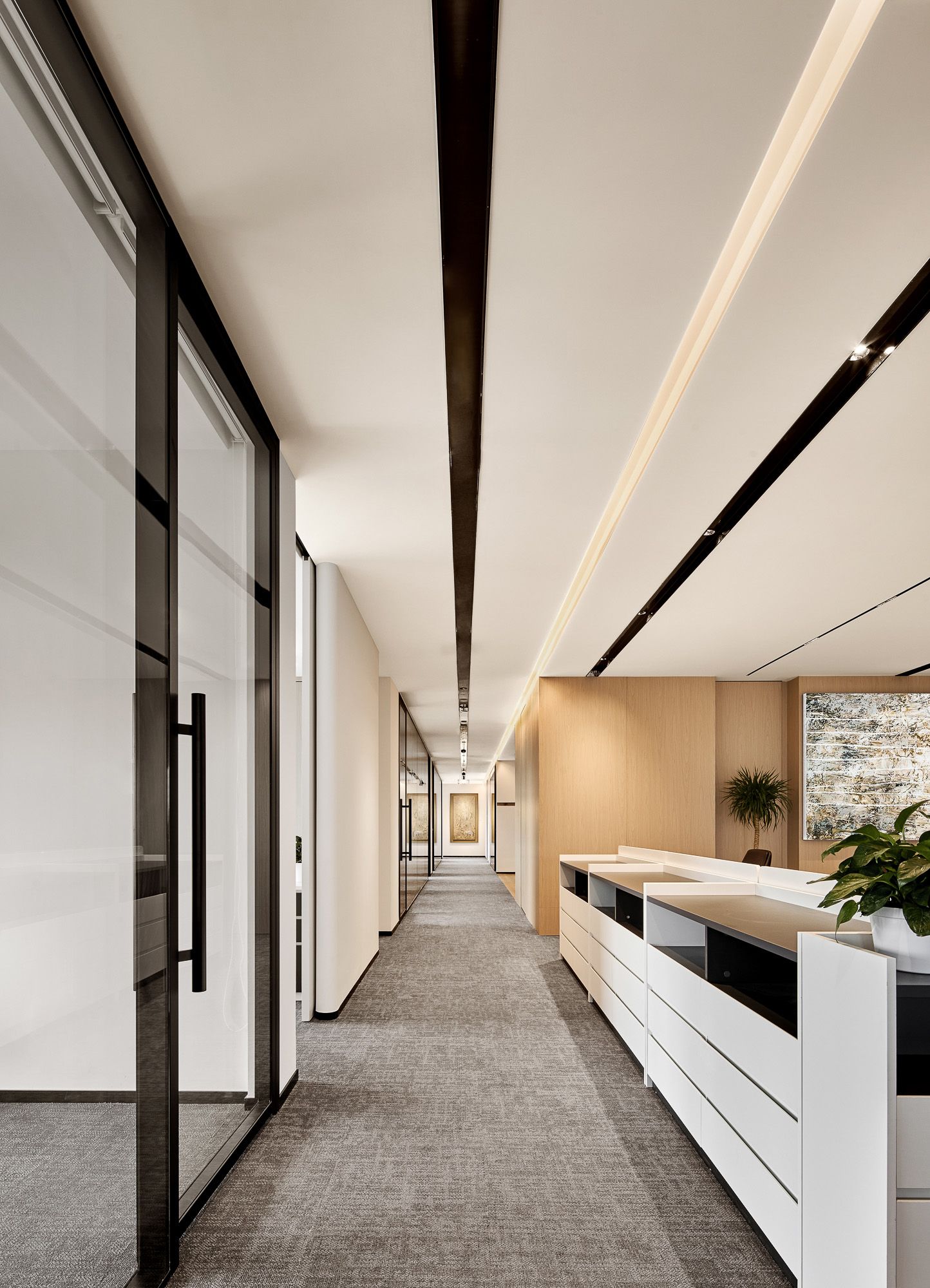 小咖资本(XIAOKA CAPITAL)成立于2015年,是一家专注于价值投资的综合资产管理机构。十年来,持续深耕股权投资与收并购领域,依托团队深厚的产业背景,多元的行业视角及资源,构建了以专业为壁垒、以长期价值为导向的投资体系,致力于在持续成长中创造稳健价值。CMD恺迈国际受托设计其杭州上城CBD核心地带总部办公新空间,践行极简美学与共生理念于一体,以现代化、国际化、包容性、灵活性、可持续性及智能技术集成的设计内核,构筑金融行业变革性办公场域。