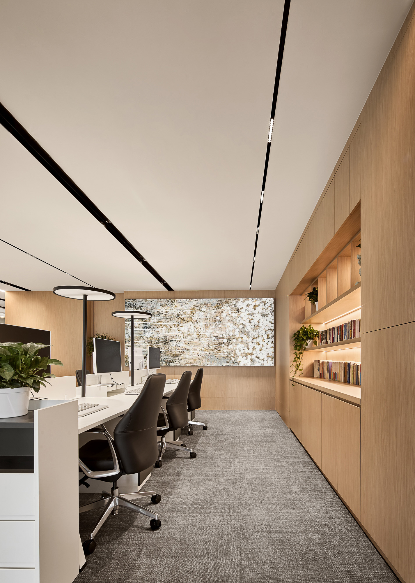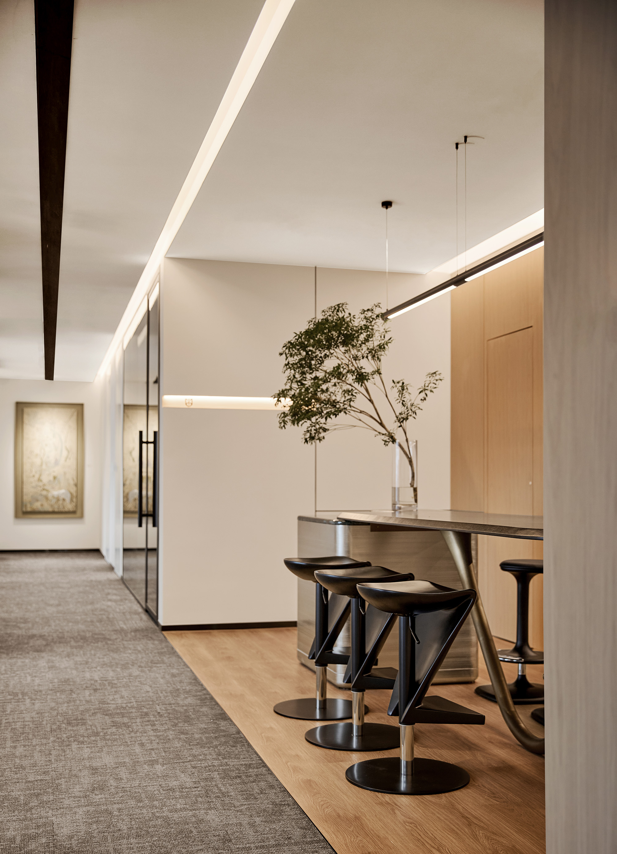 这个精心设计的工作空间,凝练企业愿景、人本文化与高效运营逻辑。小咖资本新办公室不止是办公场所,更是一场传承、创新与人文交融的空间叙事。流动天花线条、自然原生材质,每处细节皆呼应品牌专业立根、共生致远的基因内核,兼顾现代敏捷办公需求。秉承“极简筑境,协作共生”的理念,这座办公空间实现了功能性与文化底蕴的和谐统一,即营造一个更加互联、协作、多元和以品牌为导向的环境,为小咖资本的持续增长和创新奠定基础。