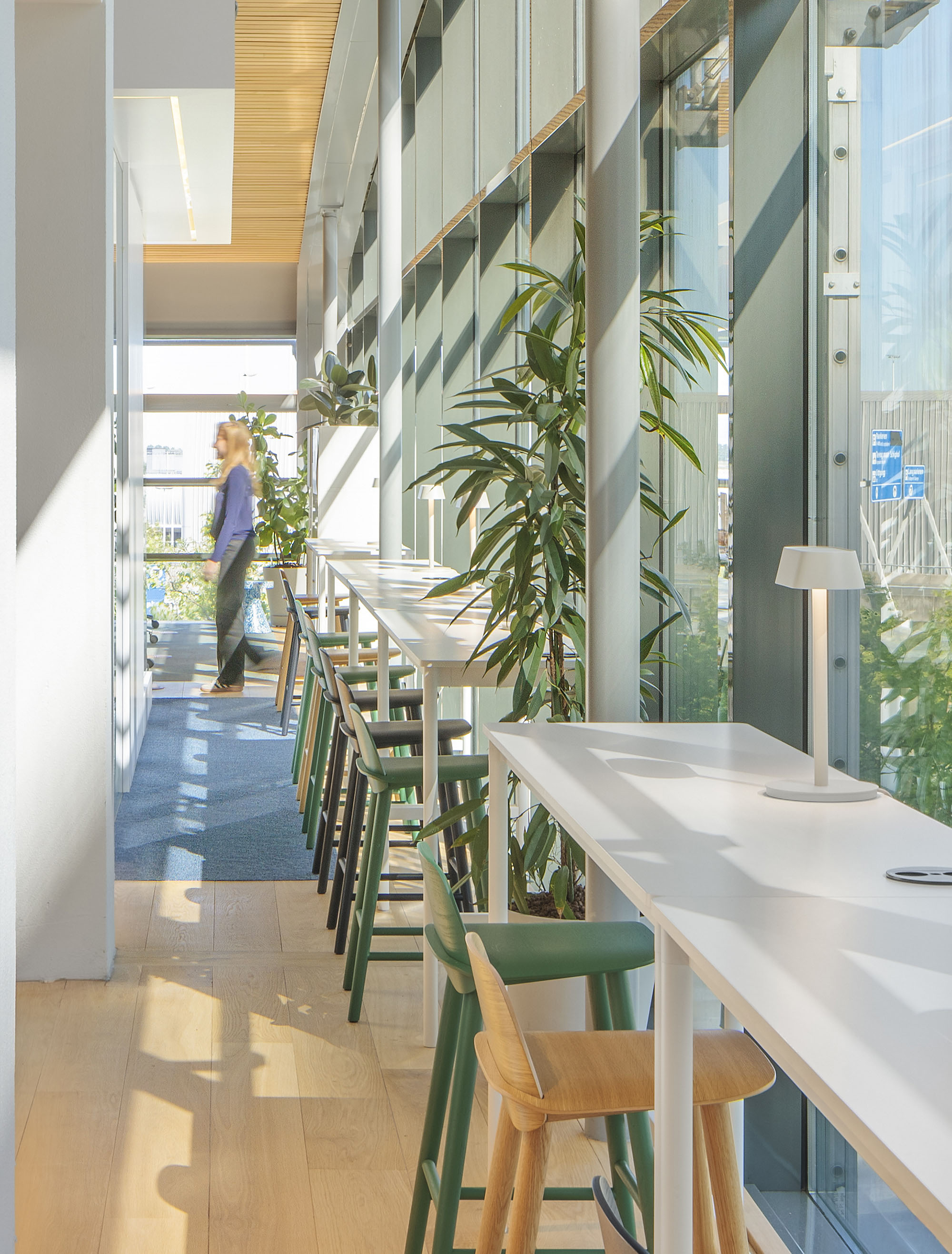 无论您是进行简短的电话交谈、参加Teams视频会议,还是想带着笔记本电脑稍作停留……该新办公空间都能让您为各类工作找到合适的位置和场景。
