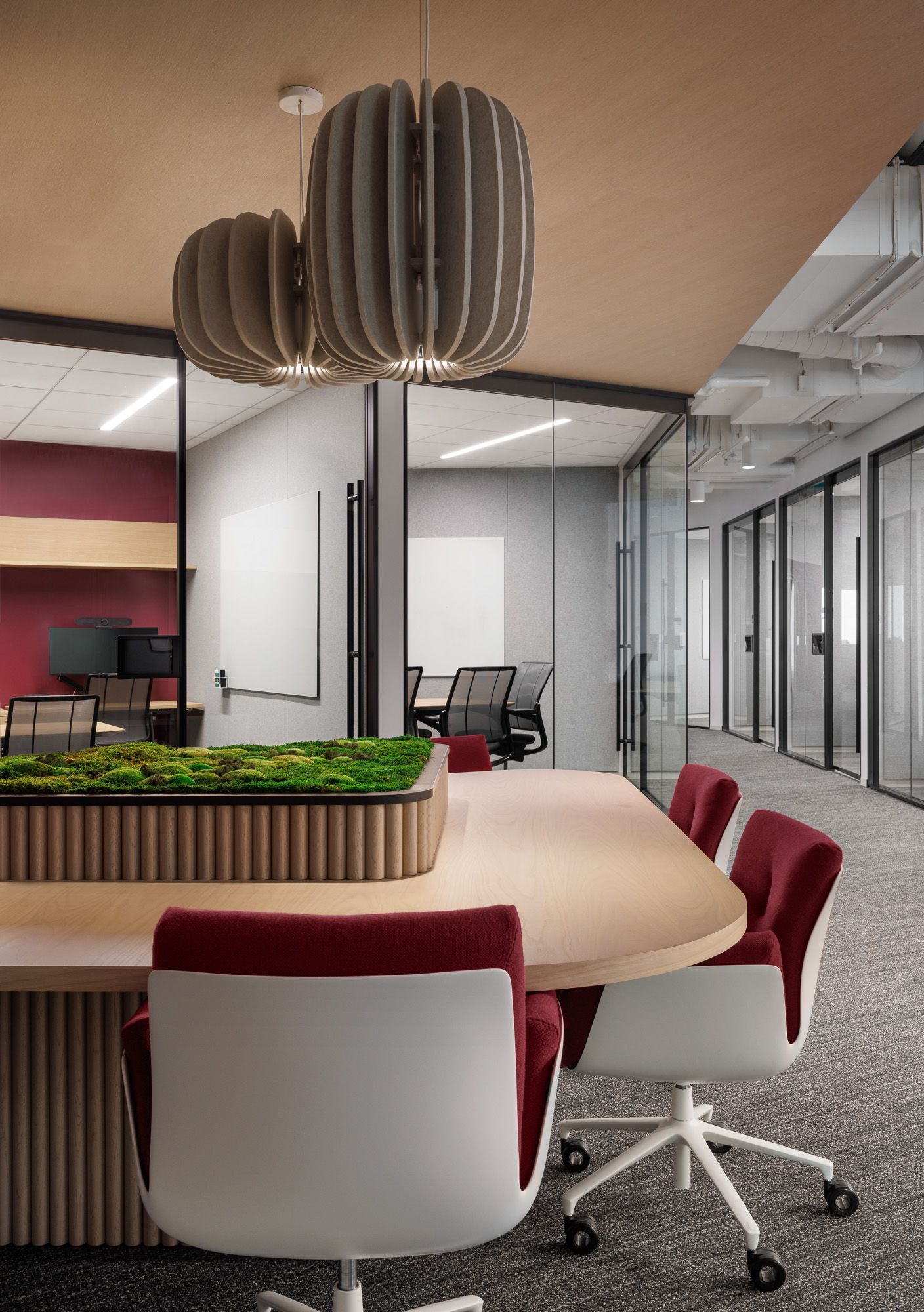 柔和流畅的曲线语言与沉静现代的色彩体系交织,共同界定了这家全球咨询公司波士顿办公场所的建筑语汇。