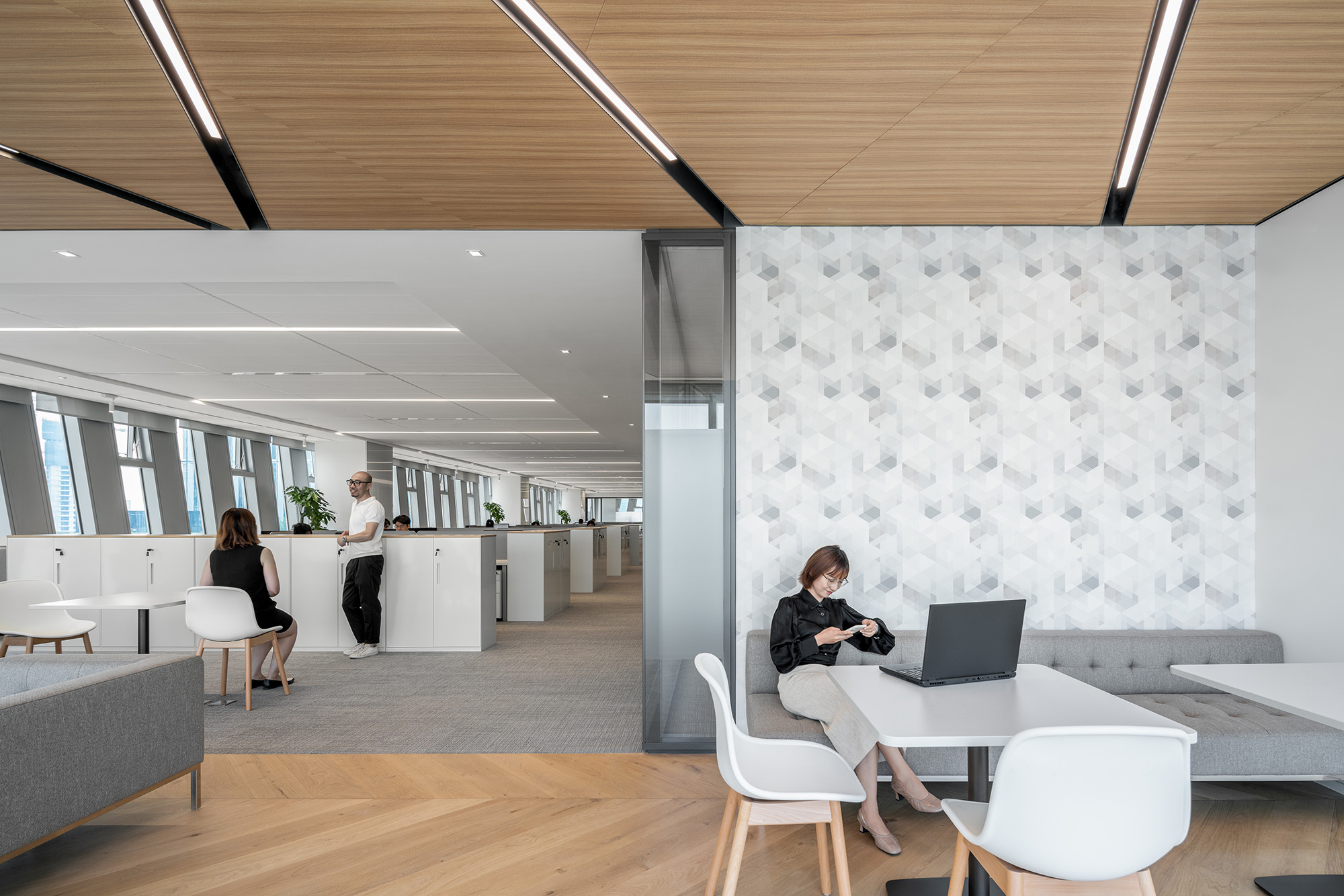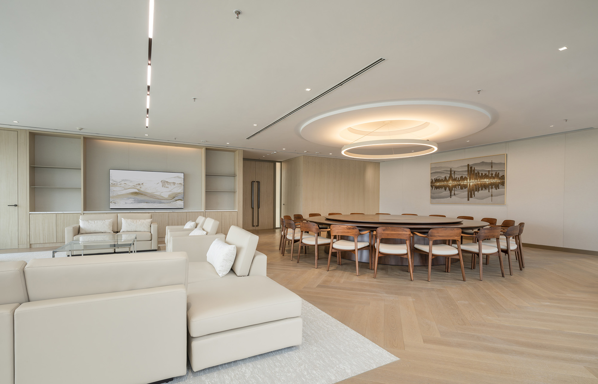 从踏入开阔明朗的接待区开始,每一处设计皆在实用与精致之间取得平衡,既促进协作,亦彰显品牌的一致性。整体设计语言在国际化的框架中,巧妙融入了东方美学元素,展现出深厚的文化底蕴与恒久质感。