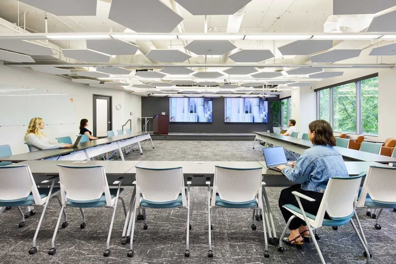 在WSB公司经历重大发展与变革的时期,Studio BV设计团队与其历时三年合作,共同重塑了其总部空间。随着WSB与另一家全国性工程公司合并,公司规模扩大了一倍,这促使他们以全新视角审视办公场所将如何演变,以支持更庞大、更具活力的团队。在探索多种方案后,就地改造被证明是最具可持续性和战略性的选择。