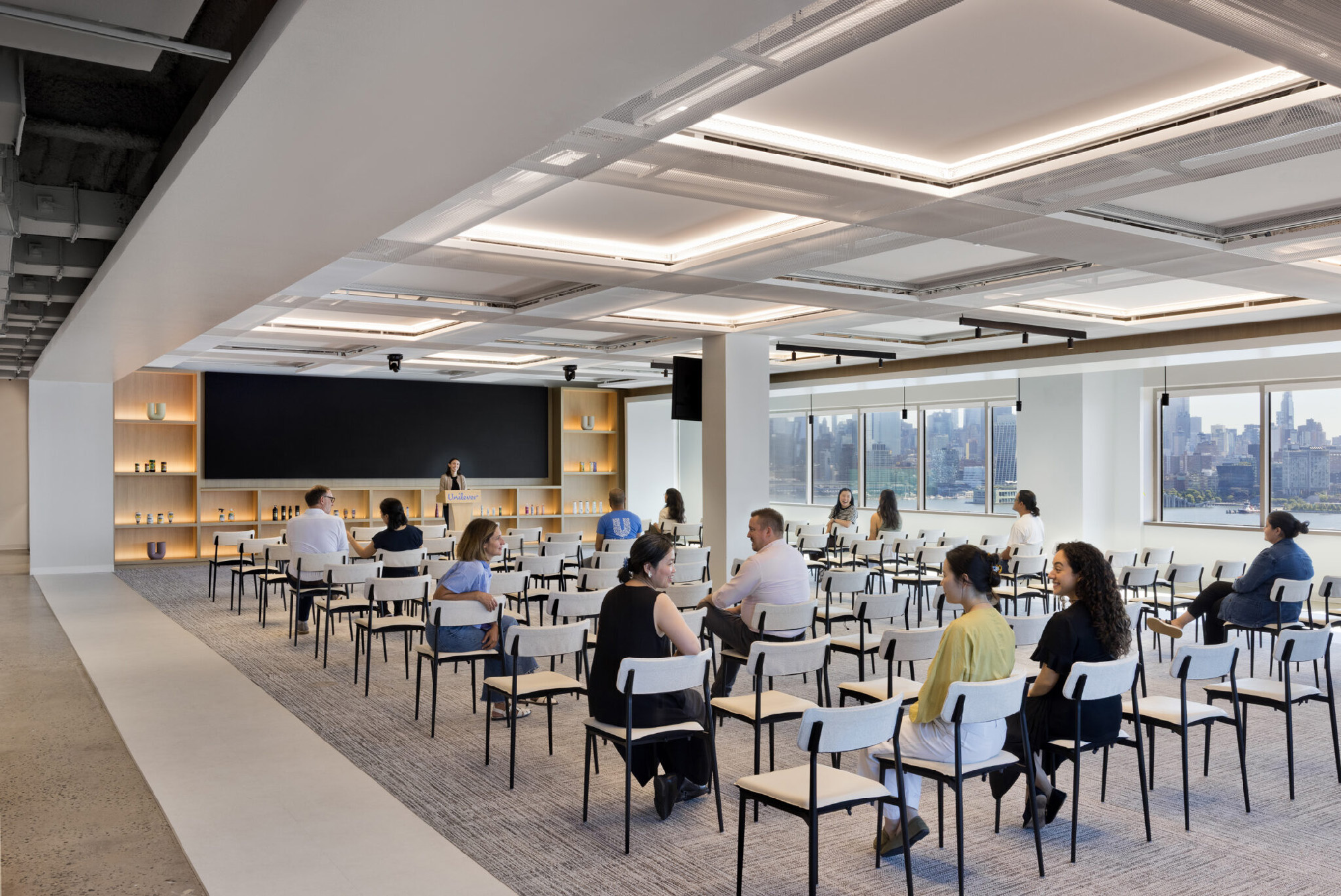 联合利华从新泽西郊区的办公园区迁至霍博肯滨水地区的一栋建筑内,标志着其办公空间战略发生了显著转变。这座三层楼高的新园区坐落于哈德逊河沿岸充满活力的市中心区,将曼哈顿的全景尽收眼底,时刻彰显着公司的全球影响力。