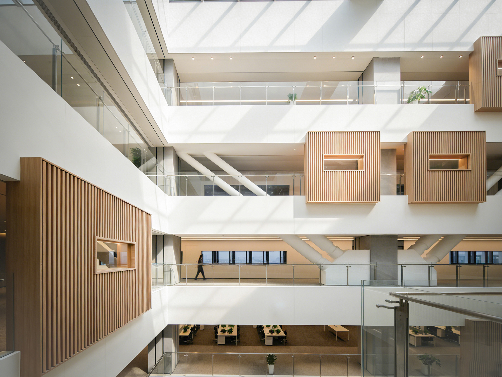 多样化的中庭则为员工提供了丰富的活动场景,这里既可以作为员工日常讨论、交流的空间,也可以举办培训、团建等活动。