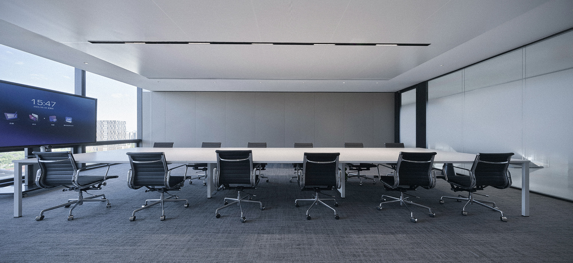 通过黑白灰的科技感色调搭配,营造出简洁、大气、富有现代感的空间氛围。