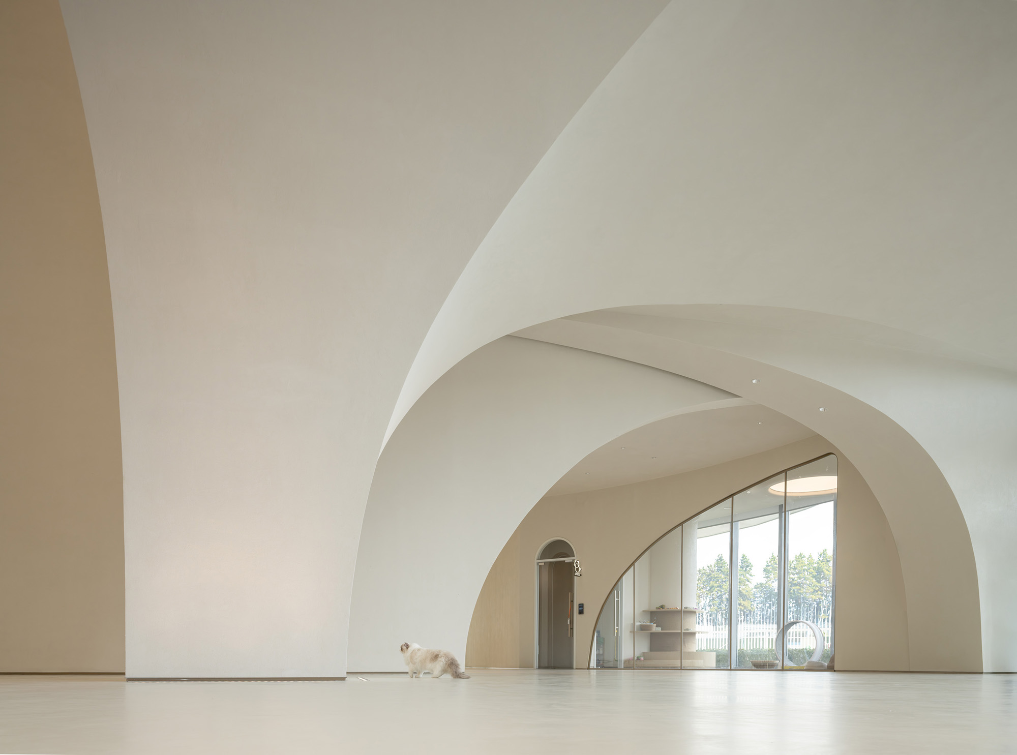 一层大堂以“兔子洞”为叙事起点,打破日常逻辑,引导访客暂时脱离现实,进入奇异而富有仪式感的世界。形态化结构、沉浸式动线与企业展示共同营造出强烈的到达体验。