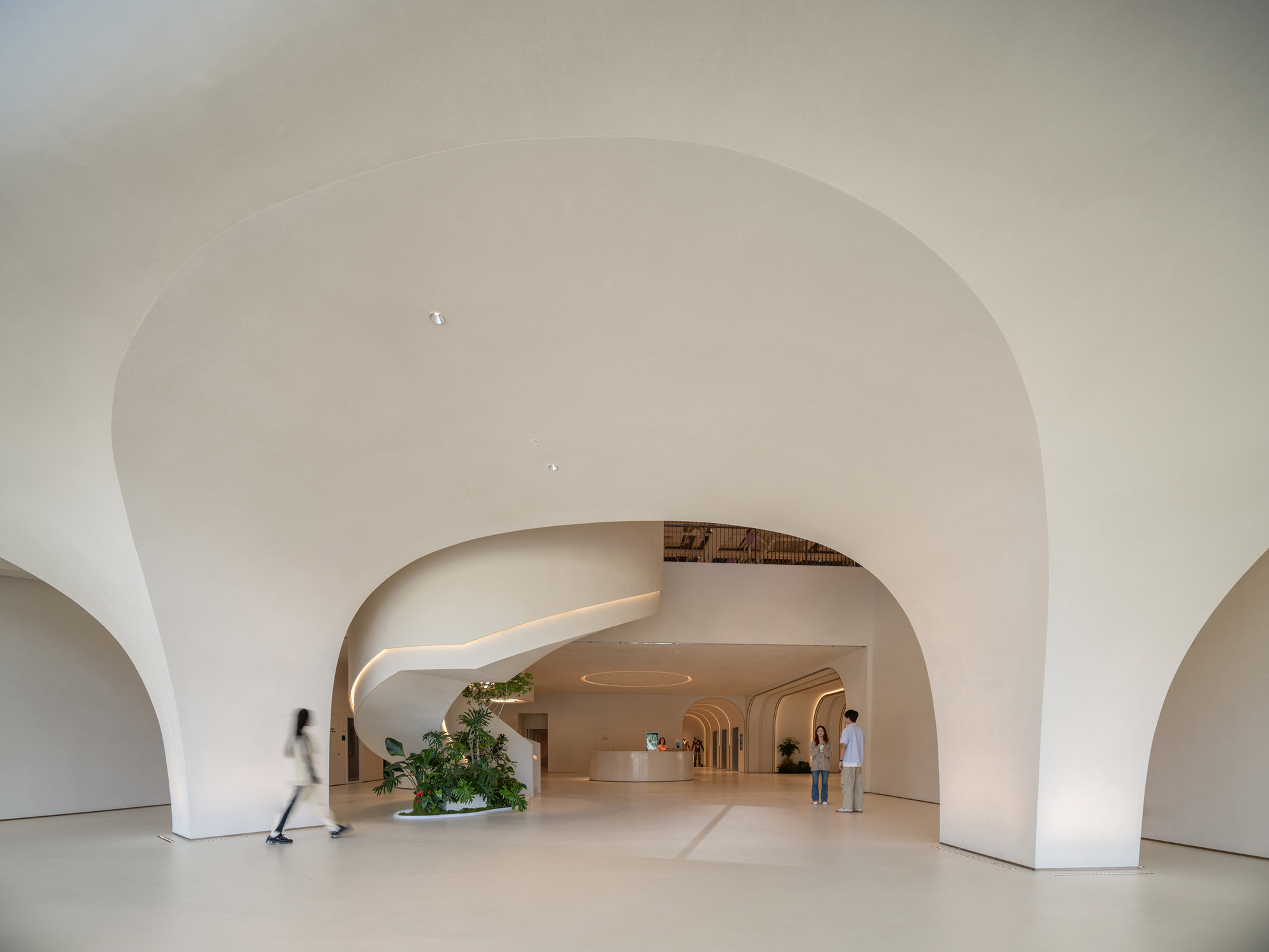 天空门户——多功能厅、培训与休闲空间,象征通往更高维度的探索;大地门户——餐厅、员工设施等生活支持空间,构建稳定而有温度的日常体验。空间不再是静态的分区,而是推动体验不断展开的“关卡”。