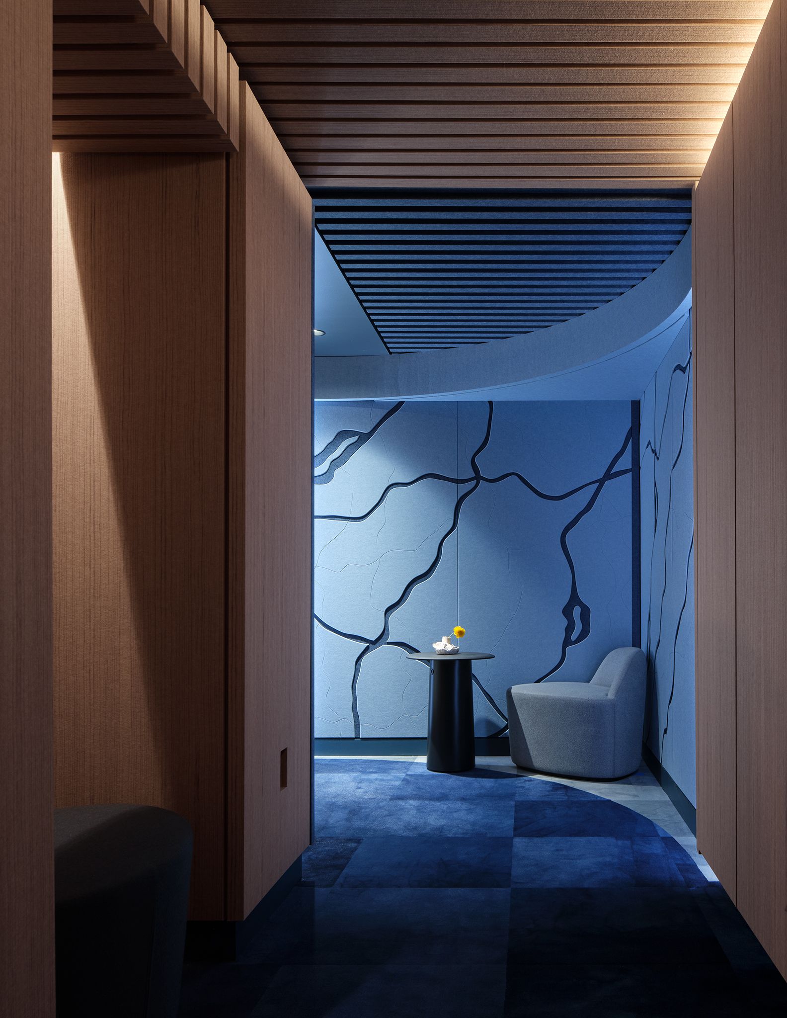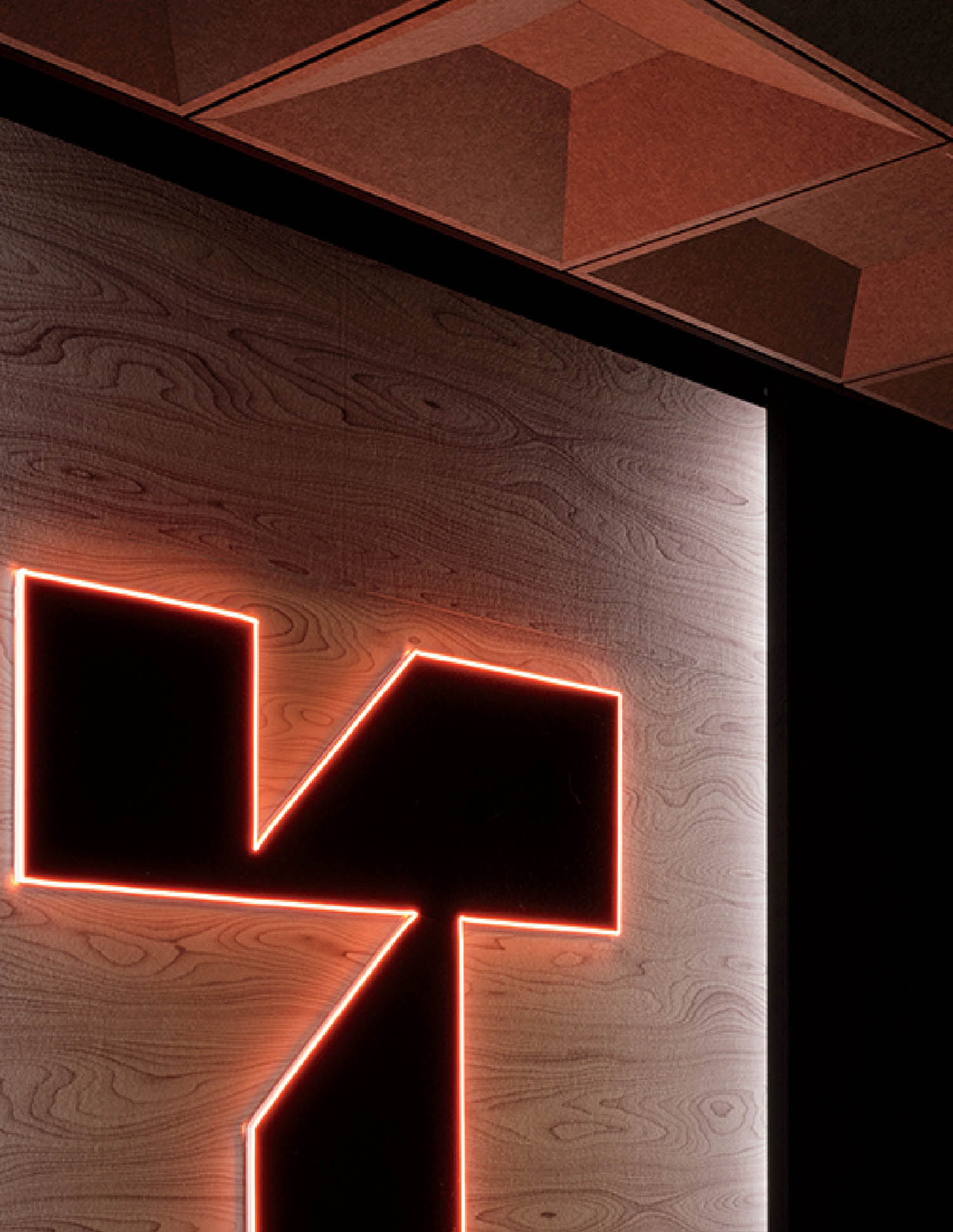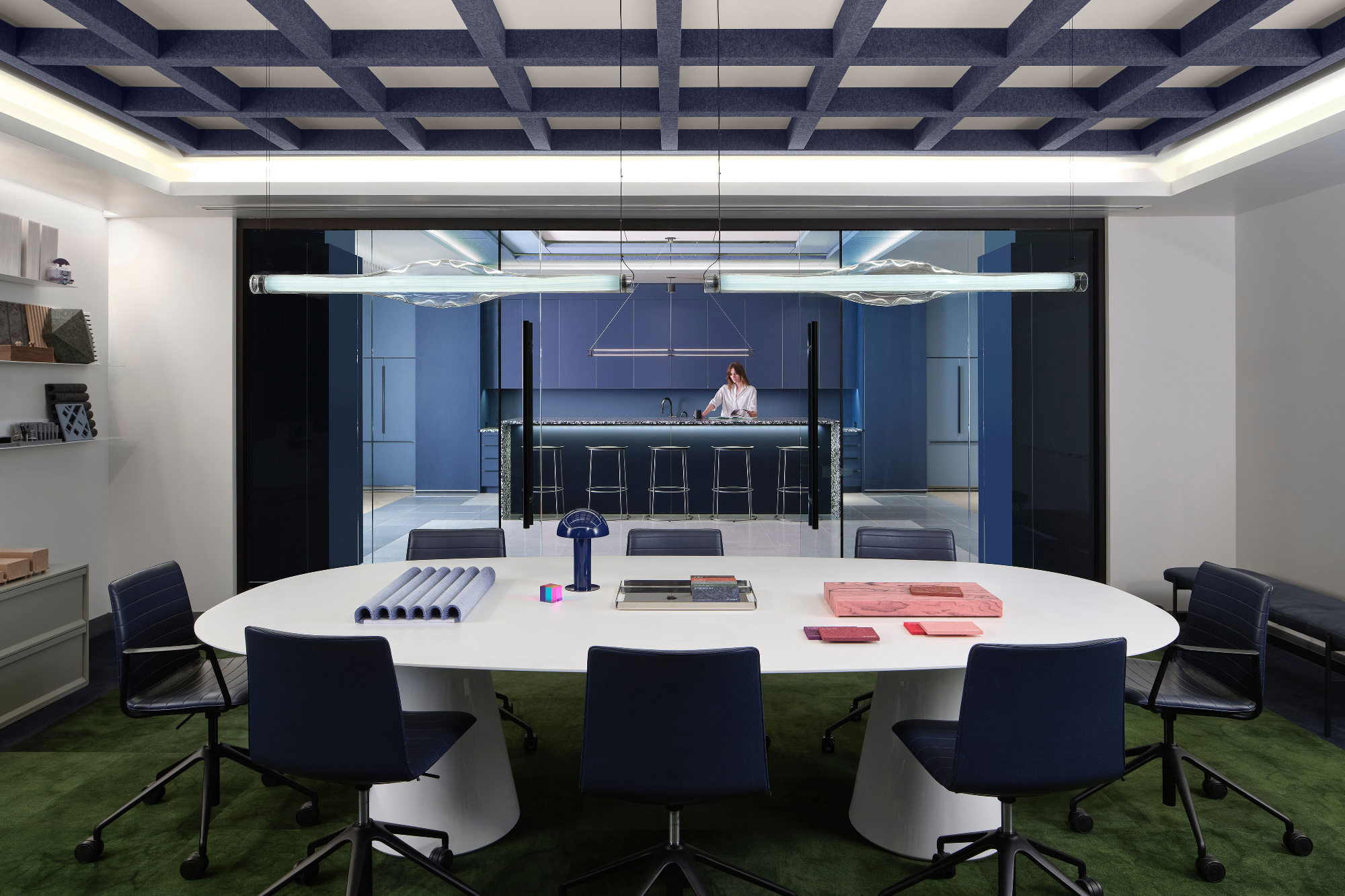 为契合Turf playful 与协作共生的品牌基因,办公空间的共享区被打造为双重核心场域:既是员工日常协同的枢纽,亦是联结设计师、建筑师及其他合作伙伴的特别活动空间。该区域巧妙玩转自然光与人造光的对话,通过节律照明技术关怀身心健康,并可根据展厅/办公活动需求灵活调节。这里如同一个过渡场域,在活动期间与展厅无缝衔接,为访客营造沉浸式体验Turf的动态环境。