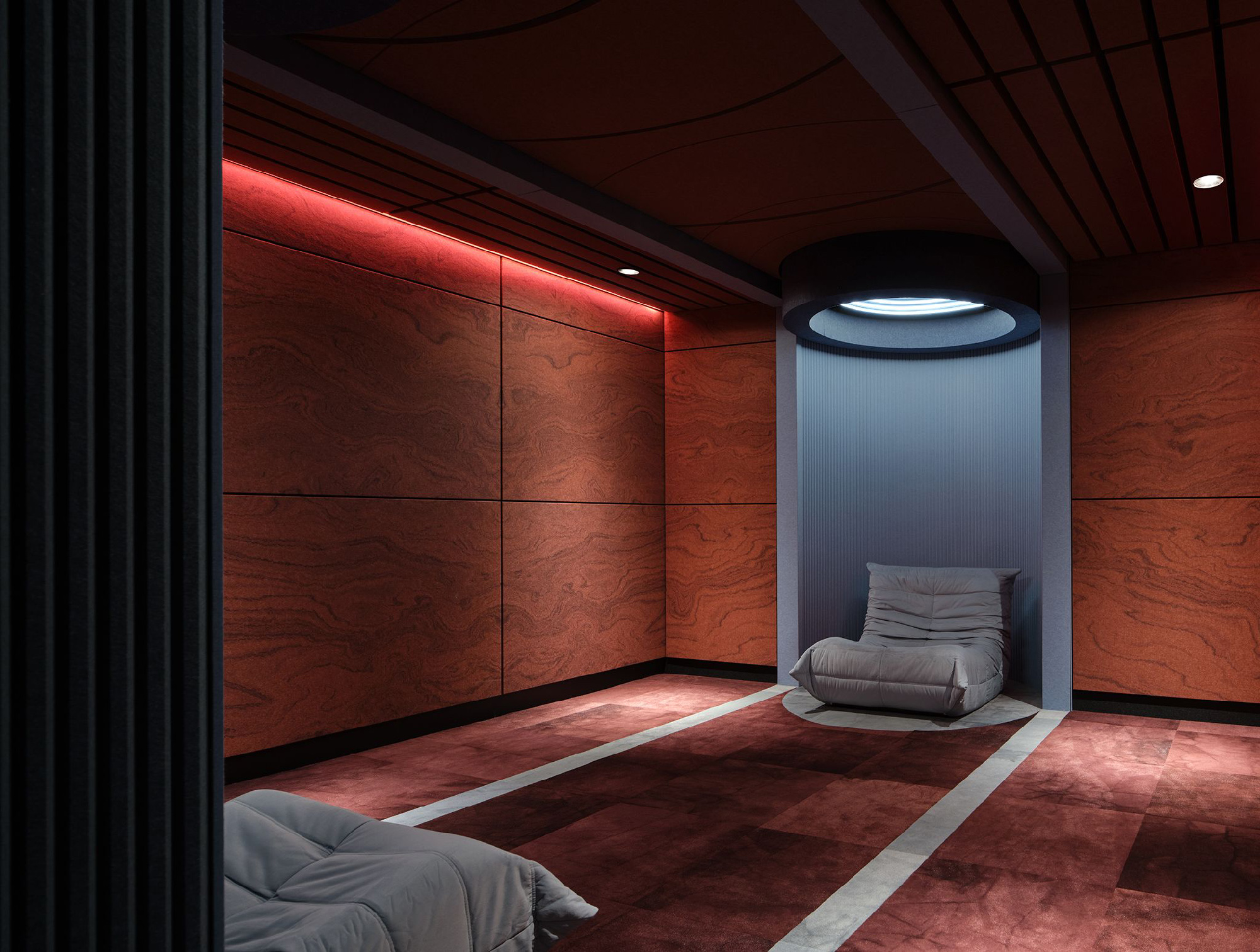 Turf 新总部空间的设计将多元工作方式与员工关怀置于首位。这一理念通过从明亮活力区到深邃静谧区的空间光谱得以实现。三处风格迥异的休闲区作为工作、休憩或交谈的休憩之所:深邃静谧的“Merlot Lounge”、明亮活力的“Green Lounge”,以及更具私密感又不失能量的“Groovy Lounge”。