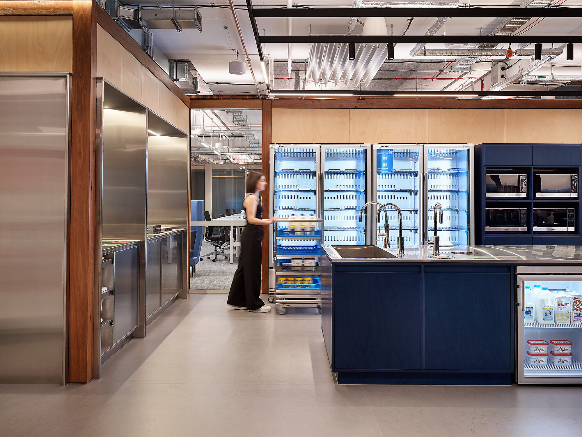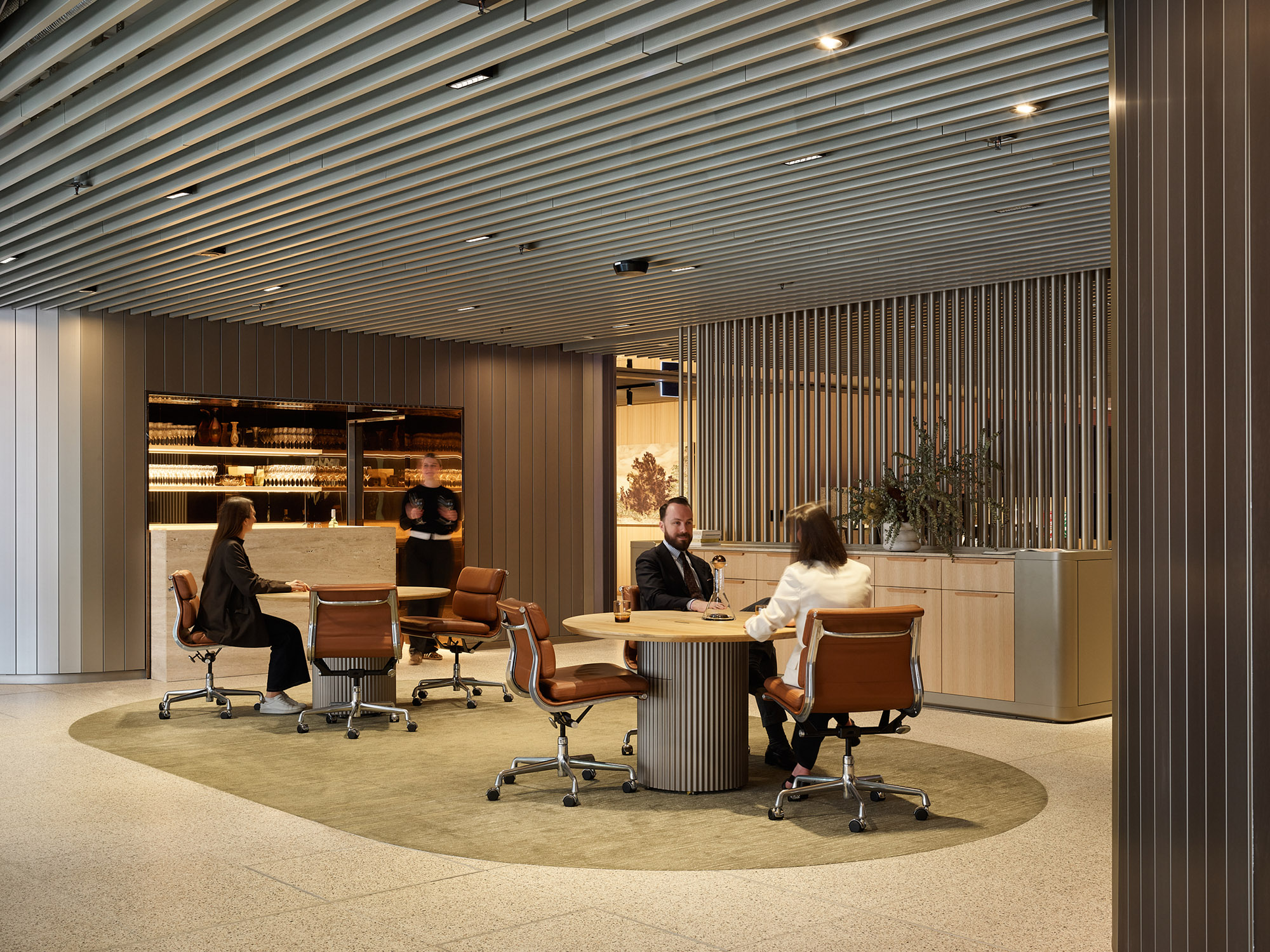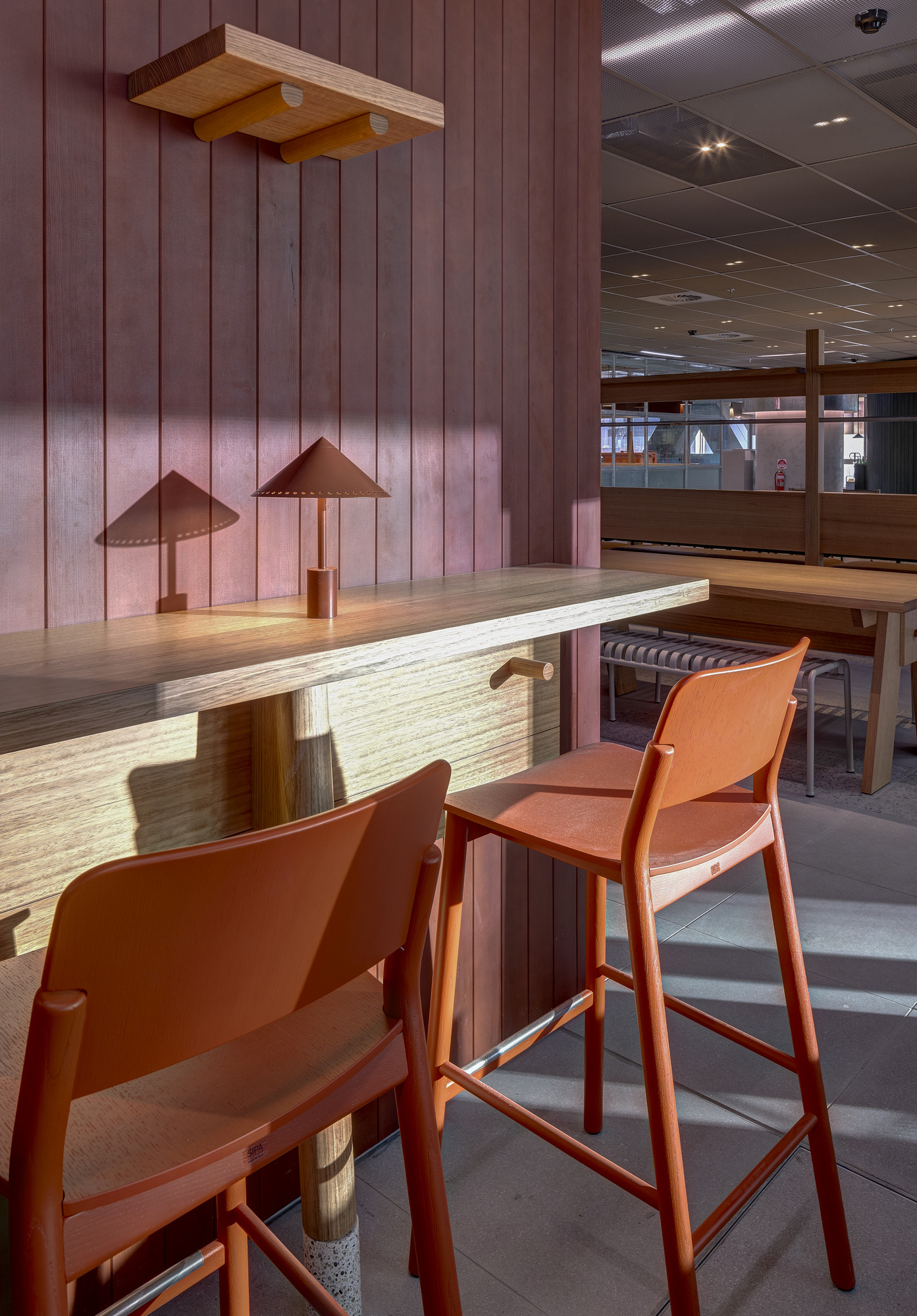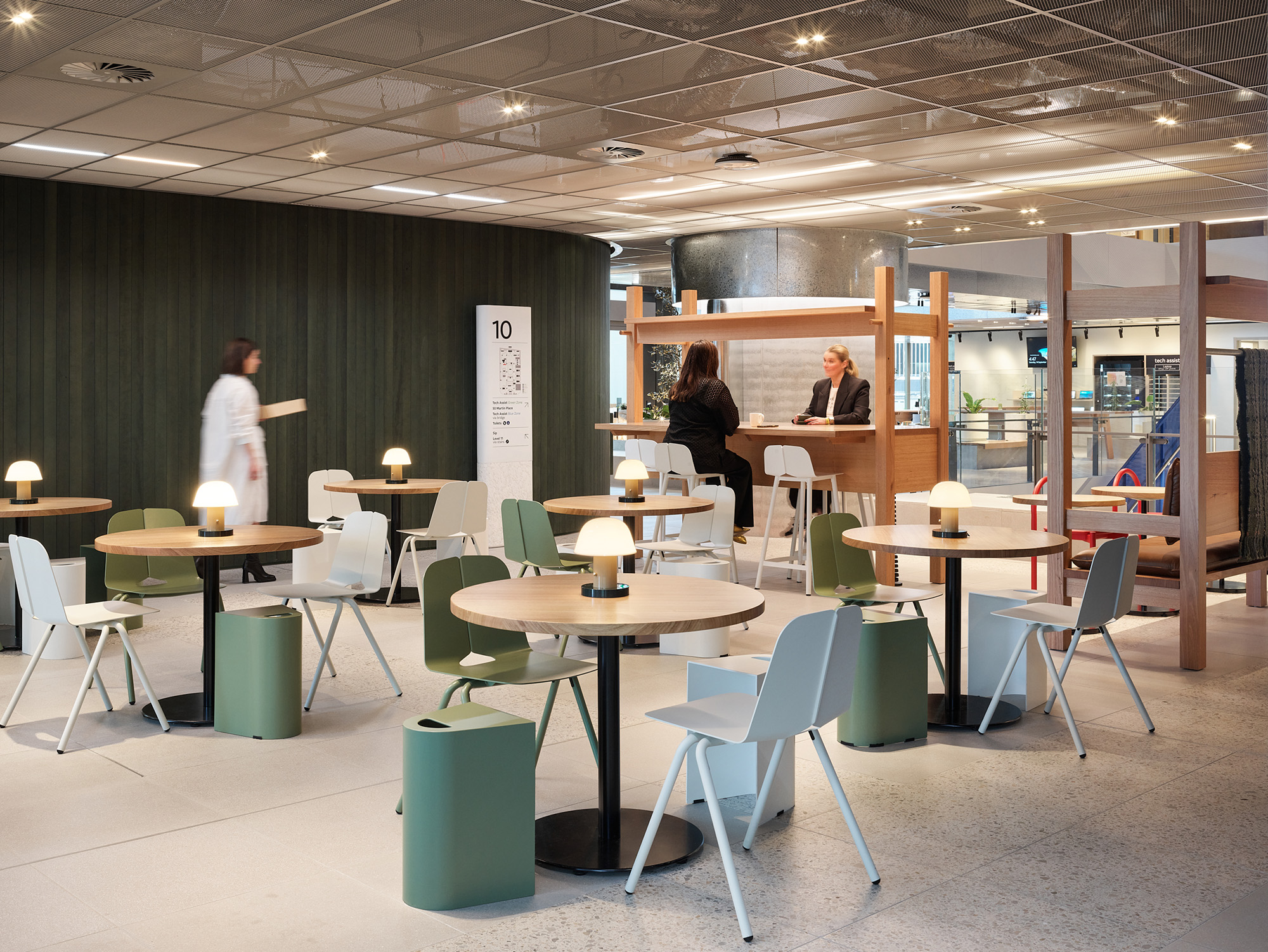 与Hecker Guthrie设计事务所合作打造的一整层空间,专为社交款待而设,设有美食集市、用餐区和一间咖啡馆,旨在促进员工交流,营造社区归属感。