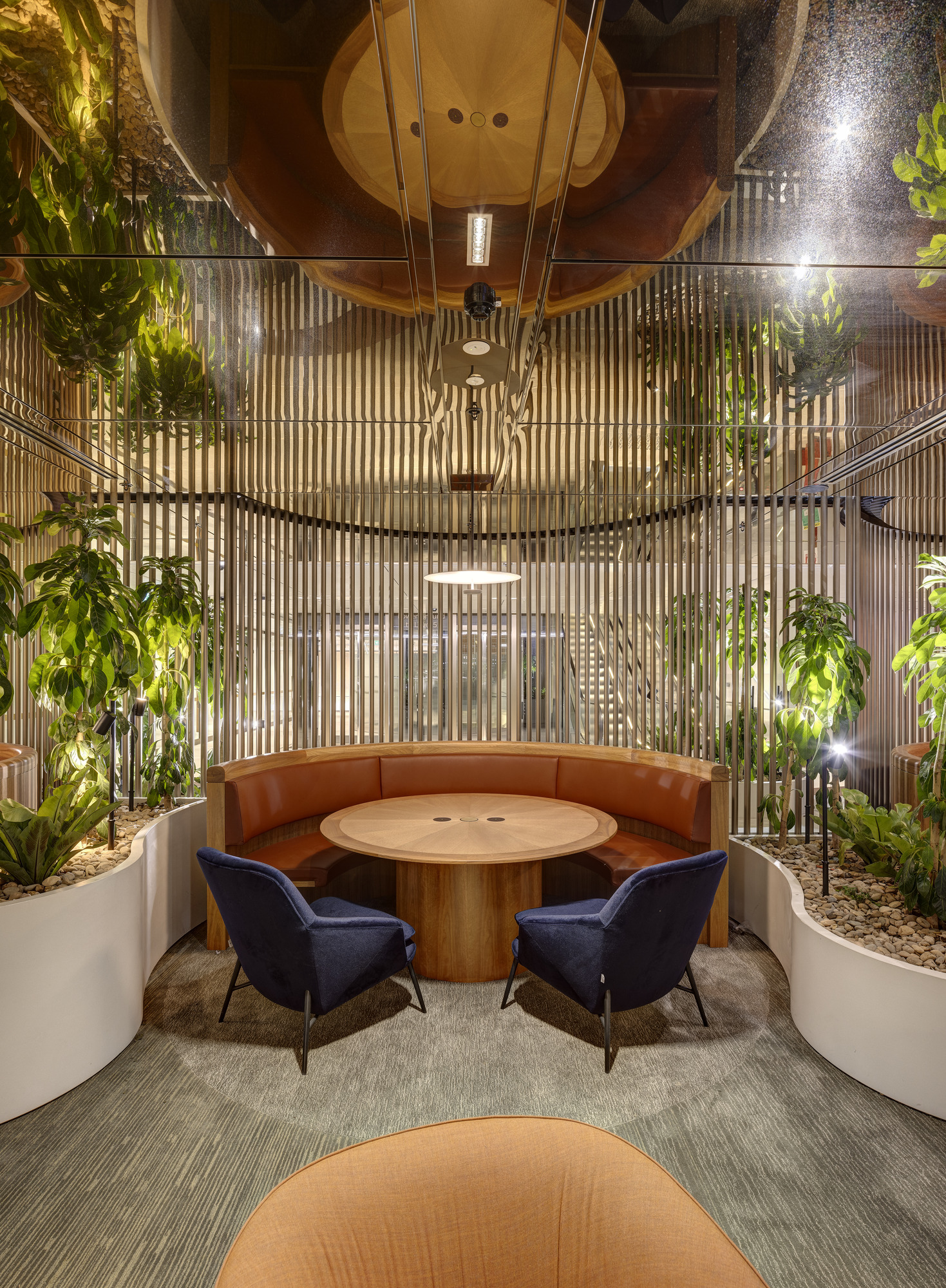 当员工与访客继续在空间中穿行,便会被引入运用了大地色系的建筑核心区域。
