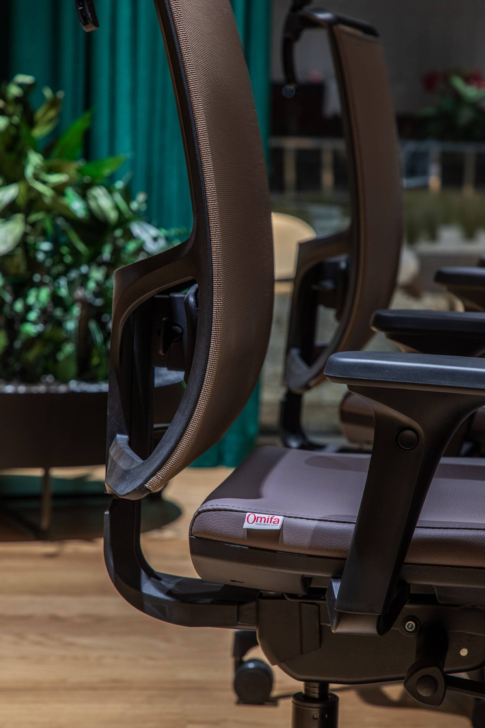 本案中,接待区作为核心的品牌宣言空间,其接待台的设计象征着转型、演进与精炼,体现了公司的身份特质。会议室定制了印有城市地图的雕刻软木板,既具备功能性又兼具美学价值,使用者可借此标注兴趣点。交通动线区域通过精心布置的家具,被打造成可用于协作与非正式会议的灵活空间,以此促进互动与多元适应性。