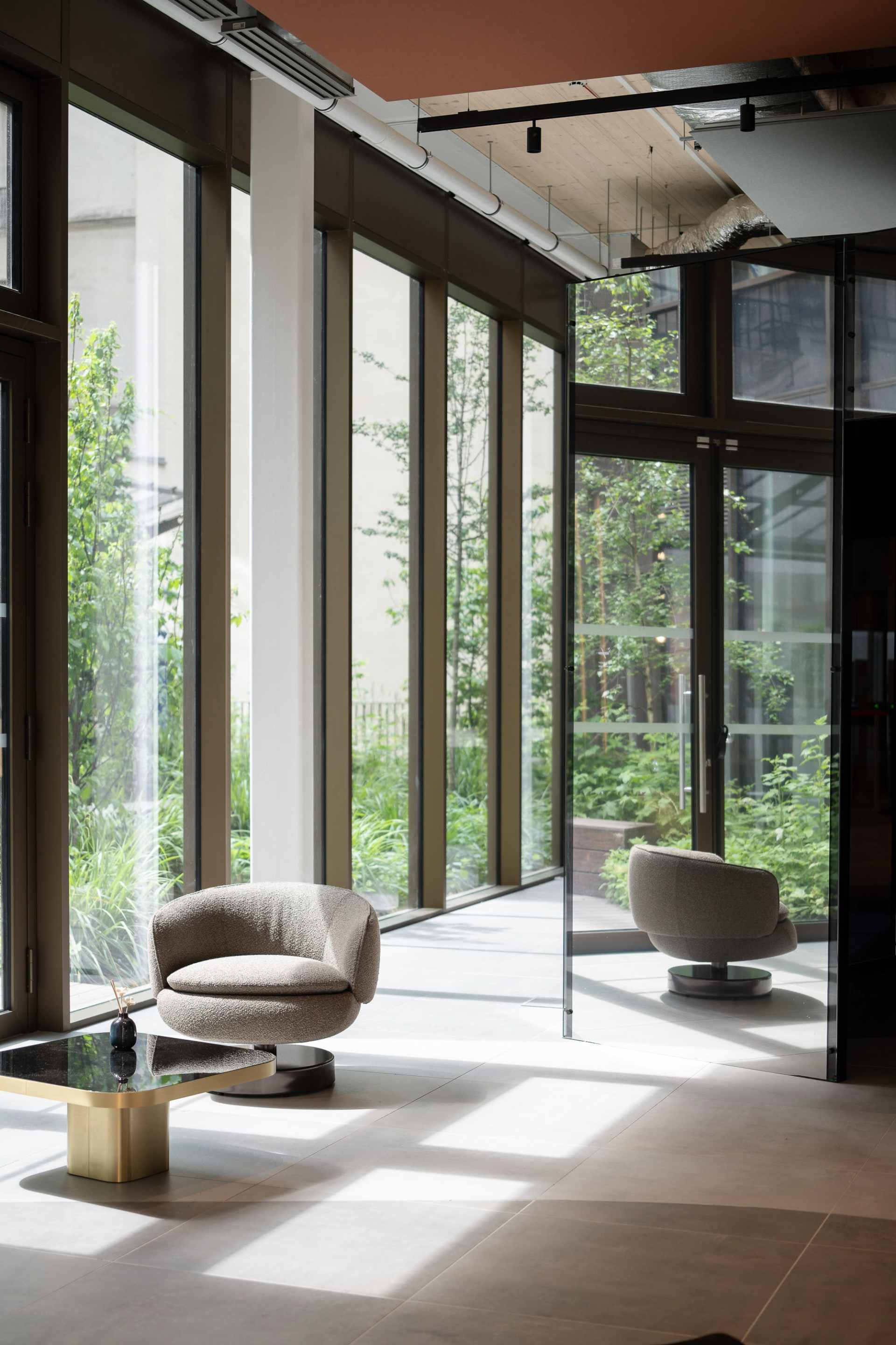 办公空间体验主要围绕两个关键楼层展开。一层营造出温馨而充满活力的环境,设有咖啡馆、广场式集会空间以及多种会议与互动区域,旨在鼓励交流、增进社区感。该楼层成为了大楼内的社交与文化中心。七层则沐浴在充足的自然光中,共享会议室、工作咖啡厅以及可俯瞰巴黎全景的景观露台,共同为协作与非正式聚会打造出鼓舞人心的场所。这两个核心楼层奠定了整体体验的基调,进一步强化了这座大楼作为“目的地”而非仅仅是“办公室”的角色定位。