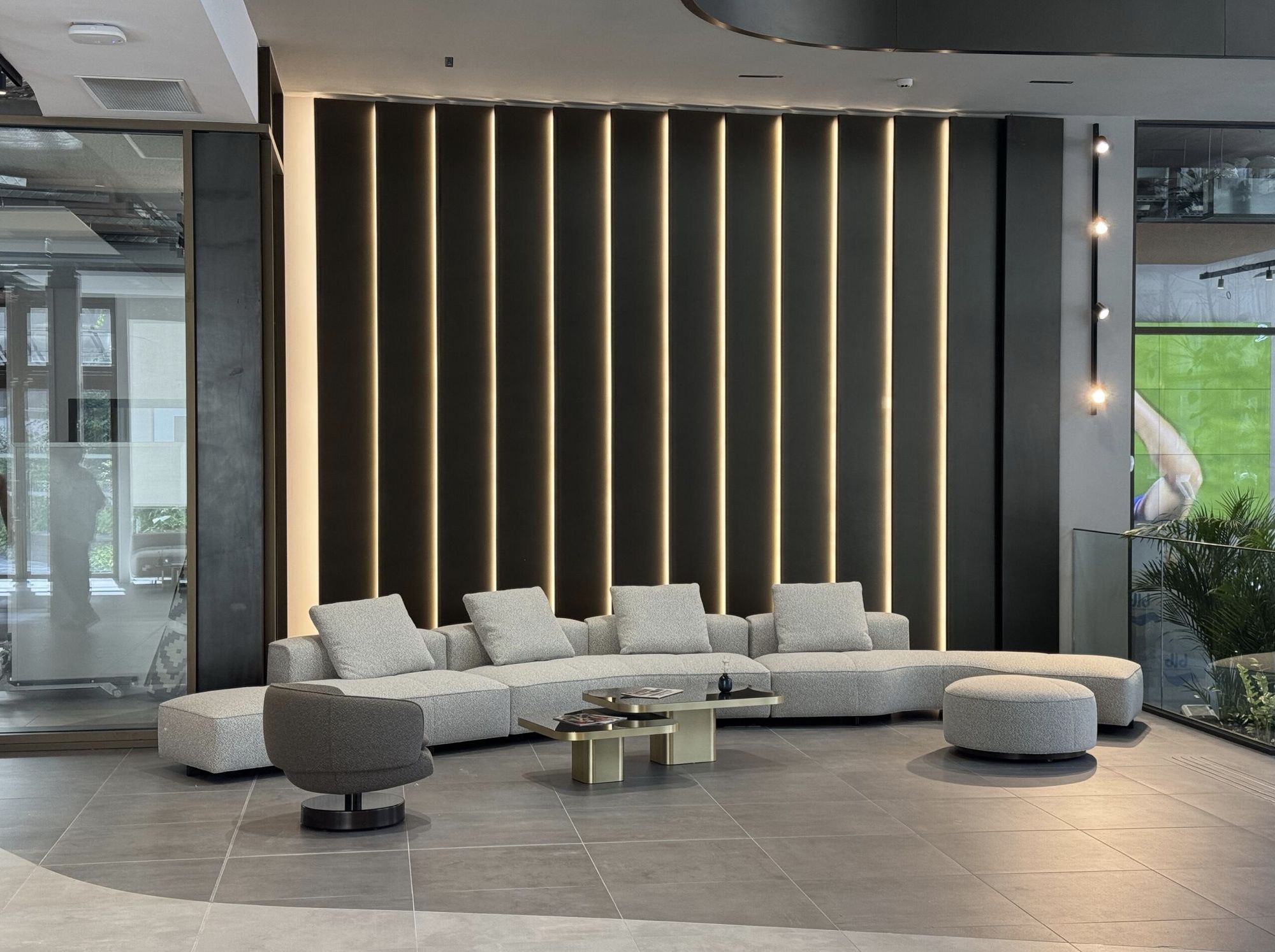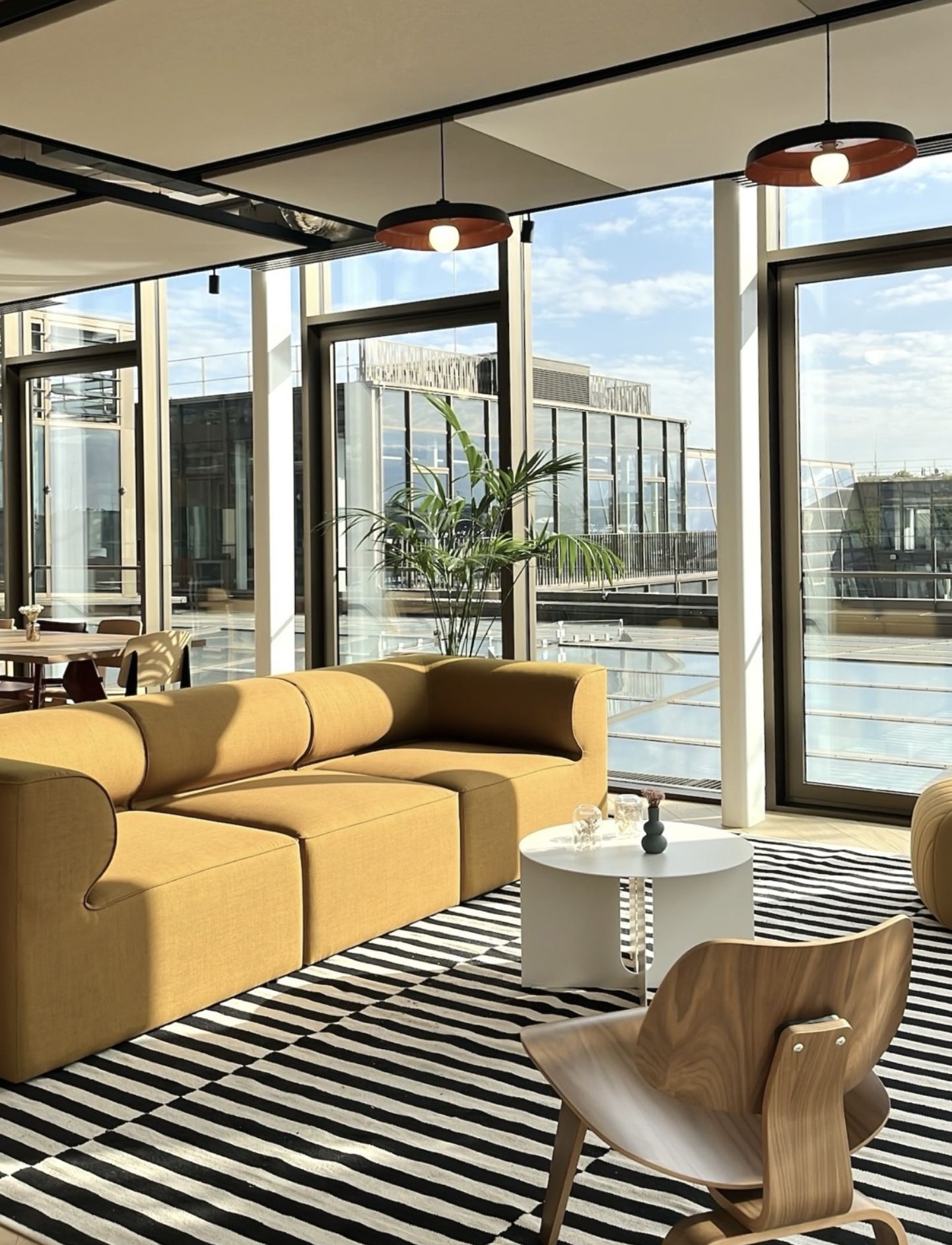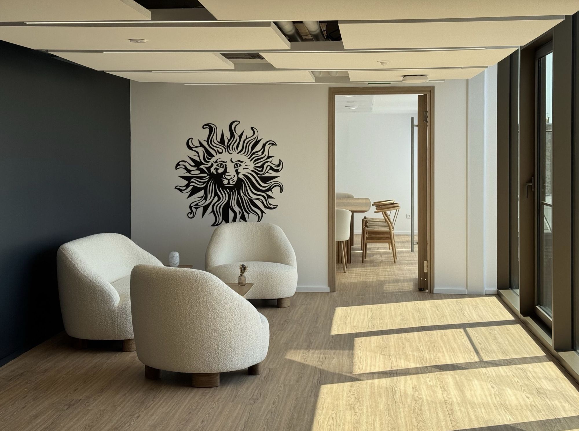 室内设计理念体现了一种对低调优雅与整体协调性的追求。各个空间旨在彰显阳狮集团的企业形象,同时让每个团队都能在此找到归属感。建筑风格温暖而精致,将棕色与米色调同巧妙的蓝红点缀相结合。项目中精心挑选并凸显了耐用的材料,进一步强化了对负责任设计及长期价值的承诺。