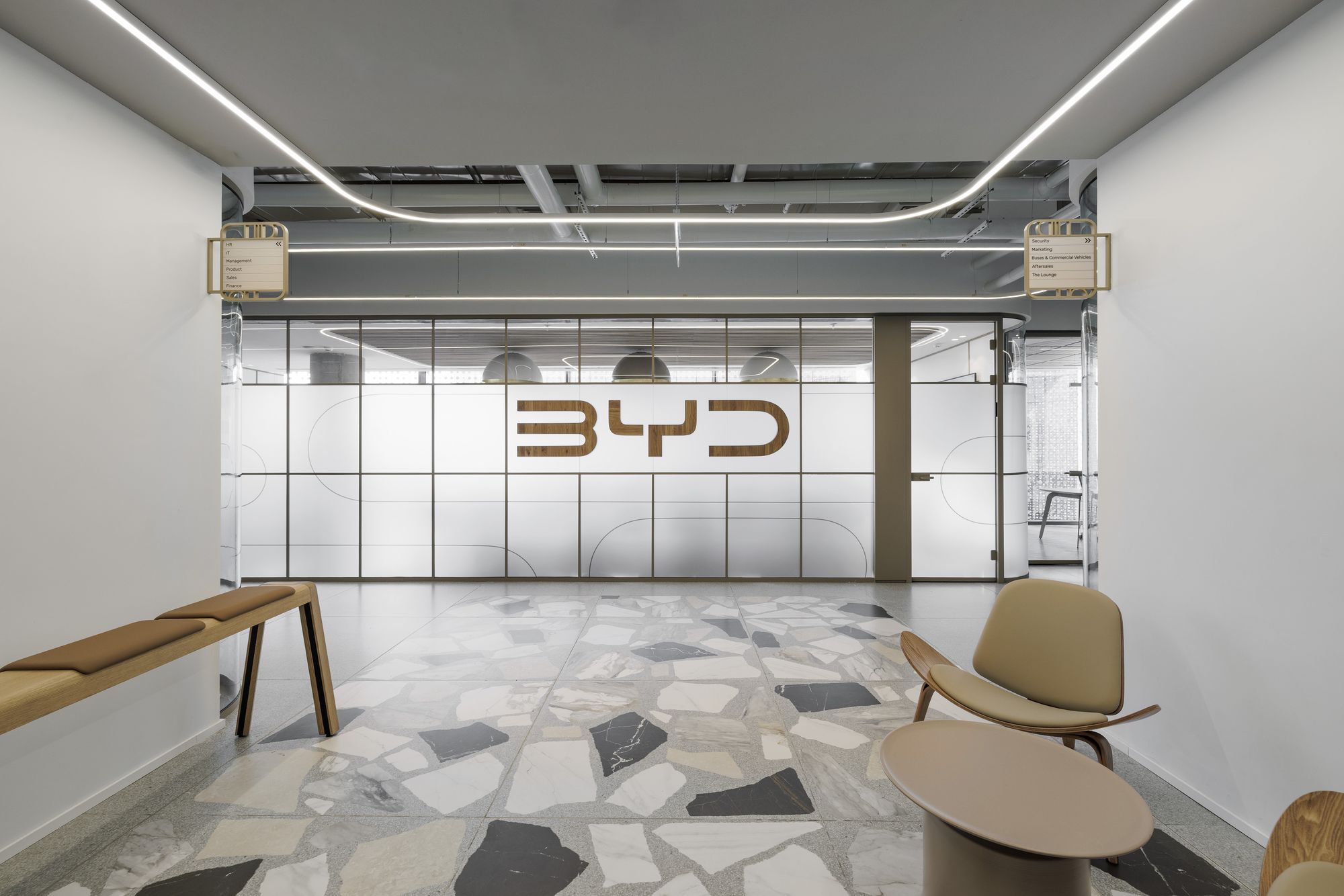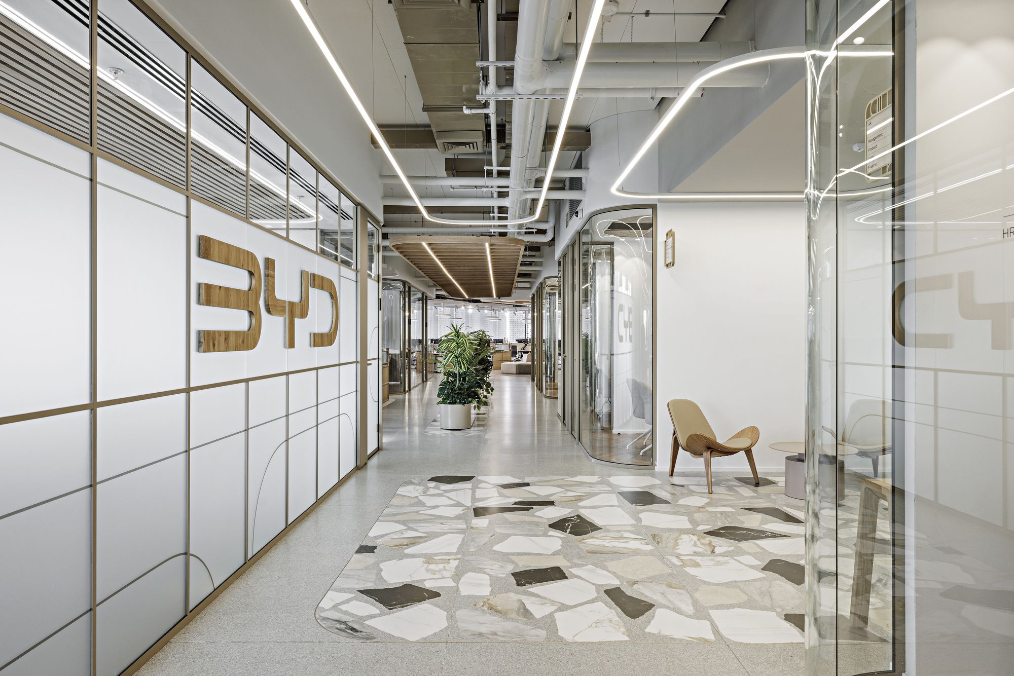 A.R. Grinberg Architects 建筑事务所精彩呈现比亚迪(BYD)位于以色列里雄莱锡安的办公室。该设计巧妙地将汽车设计的动感元素与贯穿空间的“中央大道”概念融为一体,打造出一个既激发协作、又滋养创意的宜人工作环境。