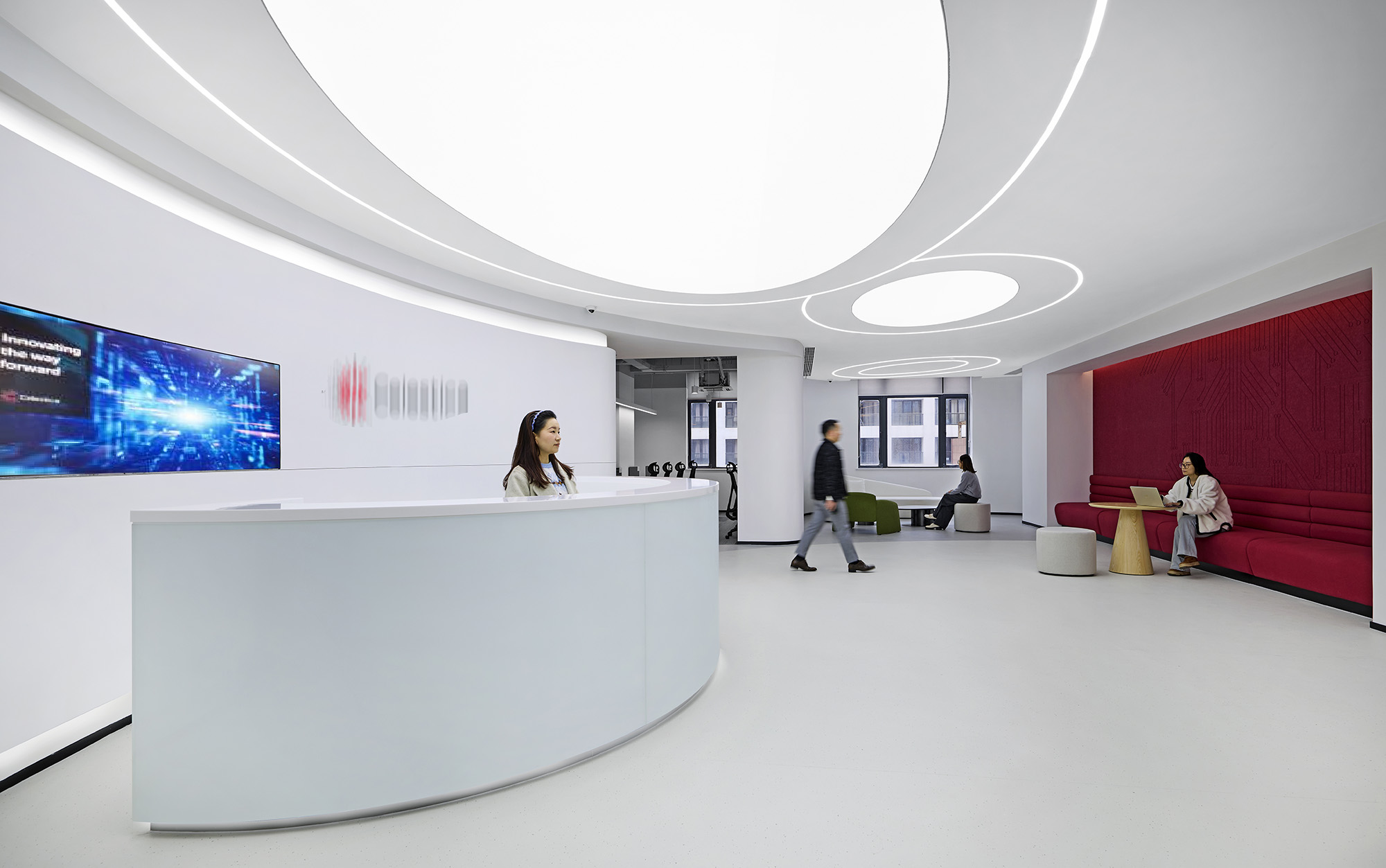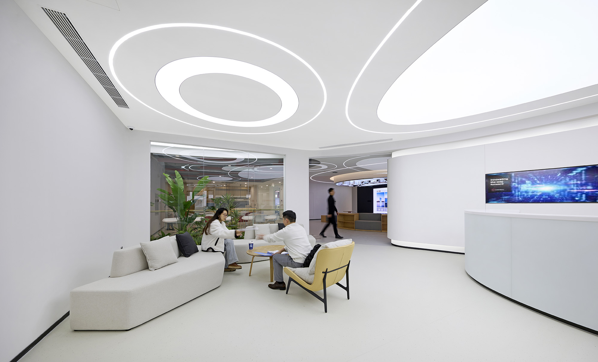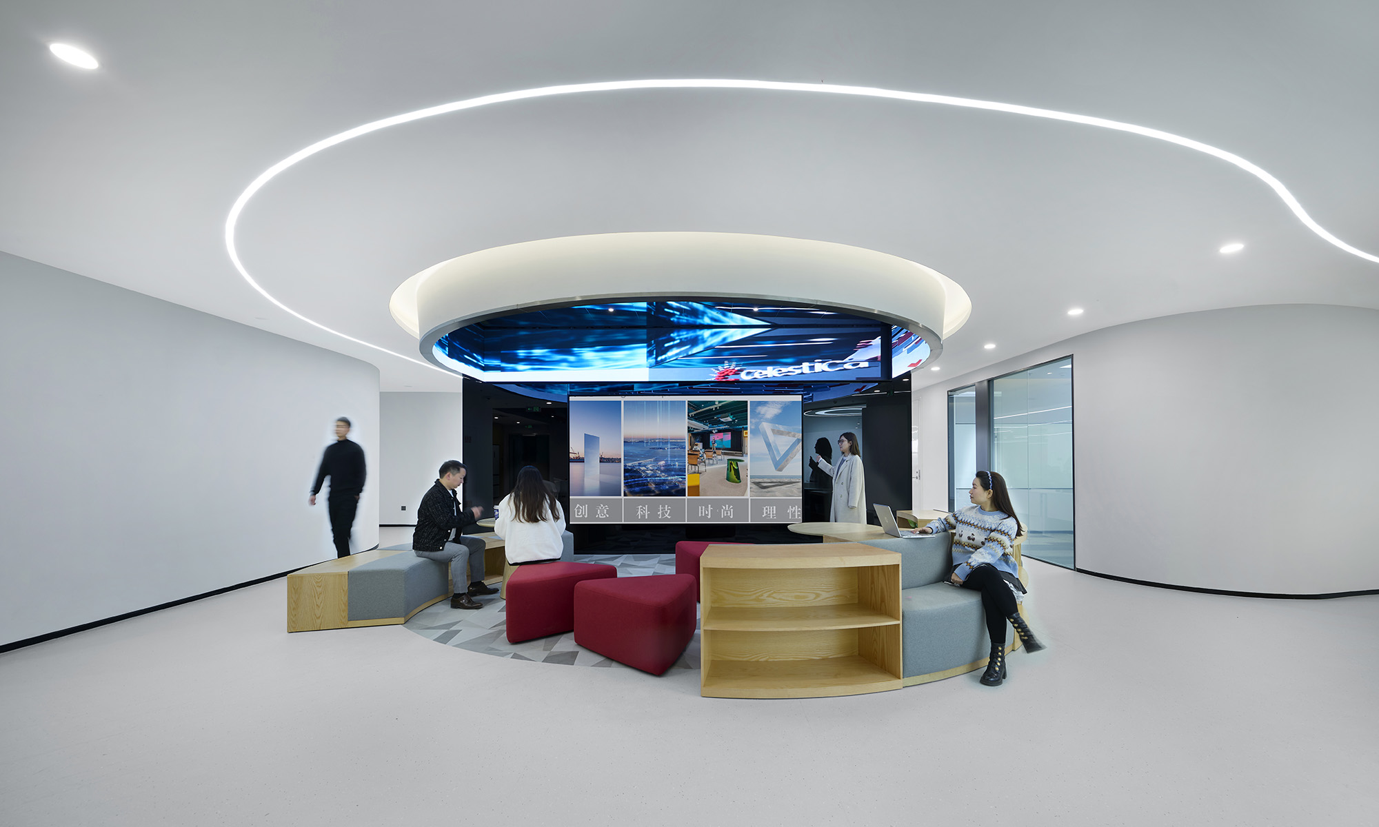整个空间围绕四个关键词展开:科技感、理性秩序、高效协同、适度人性化。