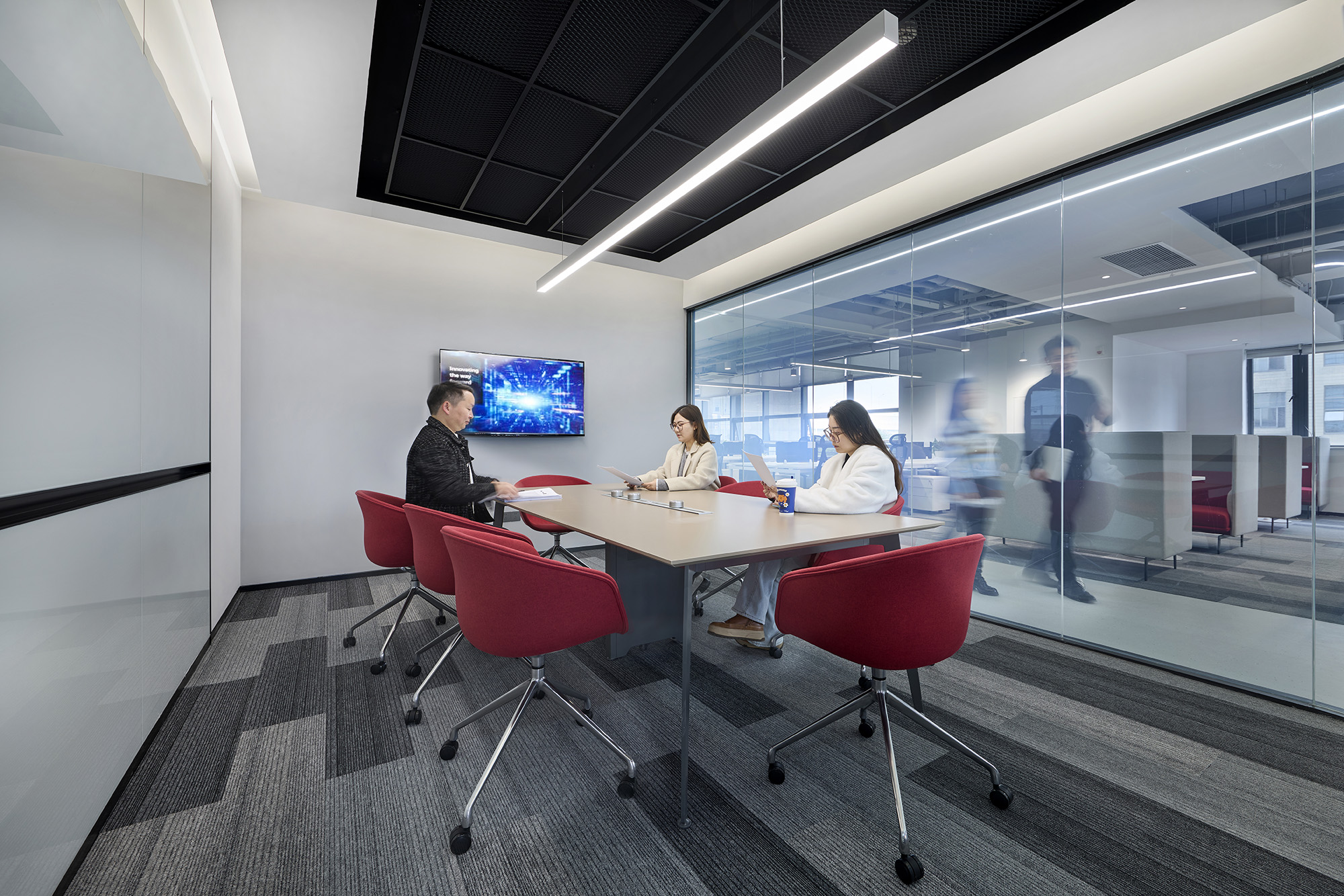 会议区不只是“开会”,而是承载企业大量决策与信息流动的地方。本案设计重点放在三个维度: