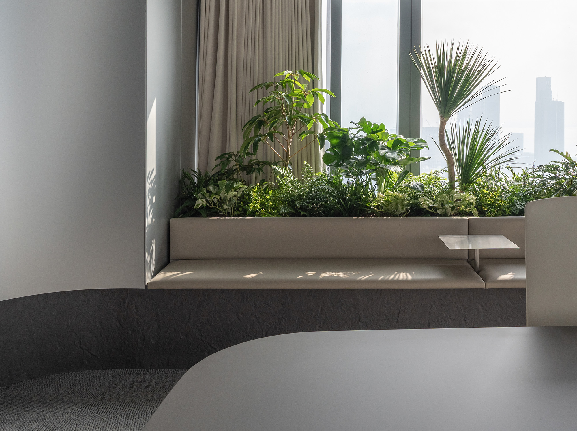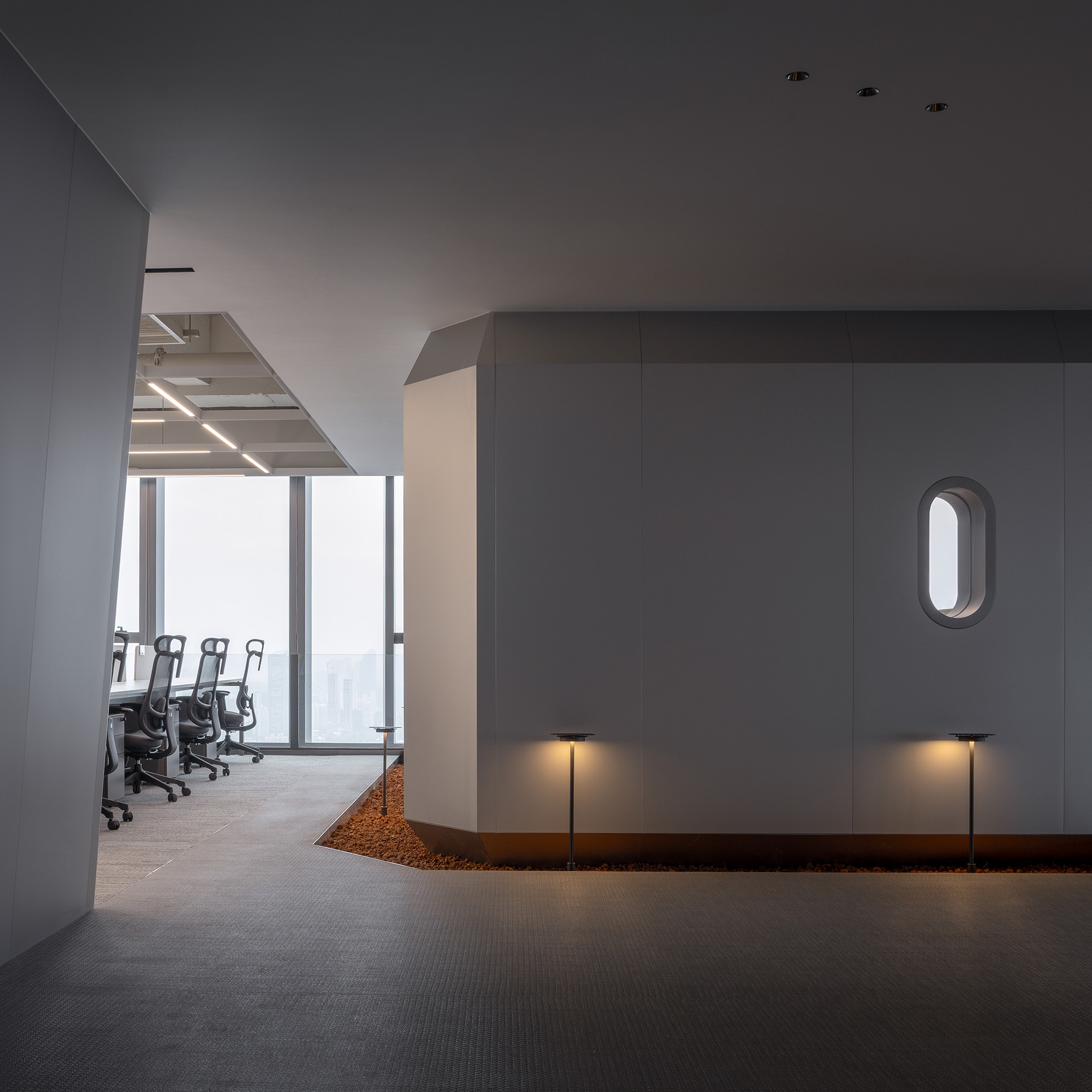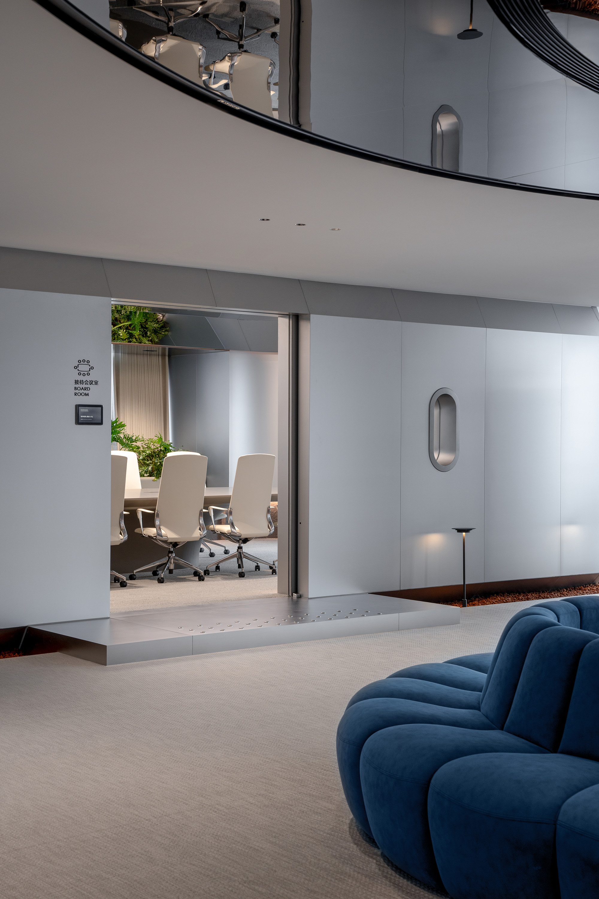 接待会议室的墙面上嵌入了太空舱的圆形舷窗,透过舷窗,看到的不是冰冷的设备,而是精心布置的绿植景观——这是对未来生态的隐喻。