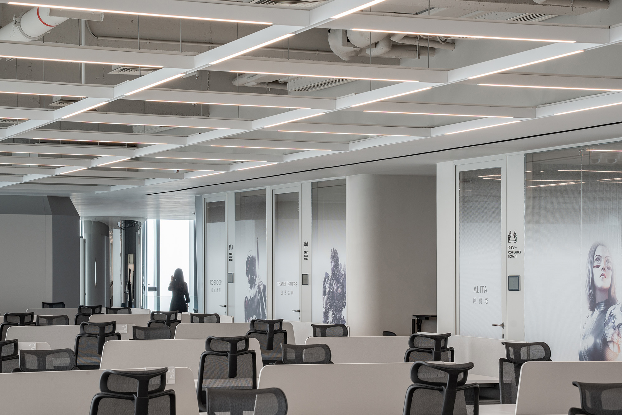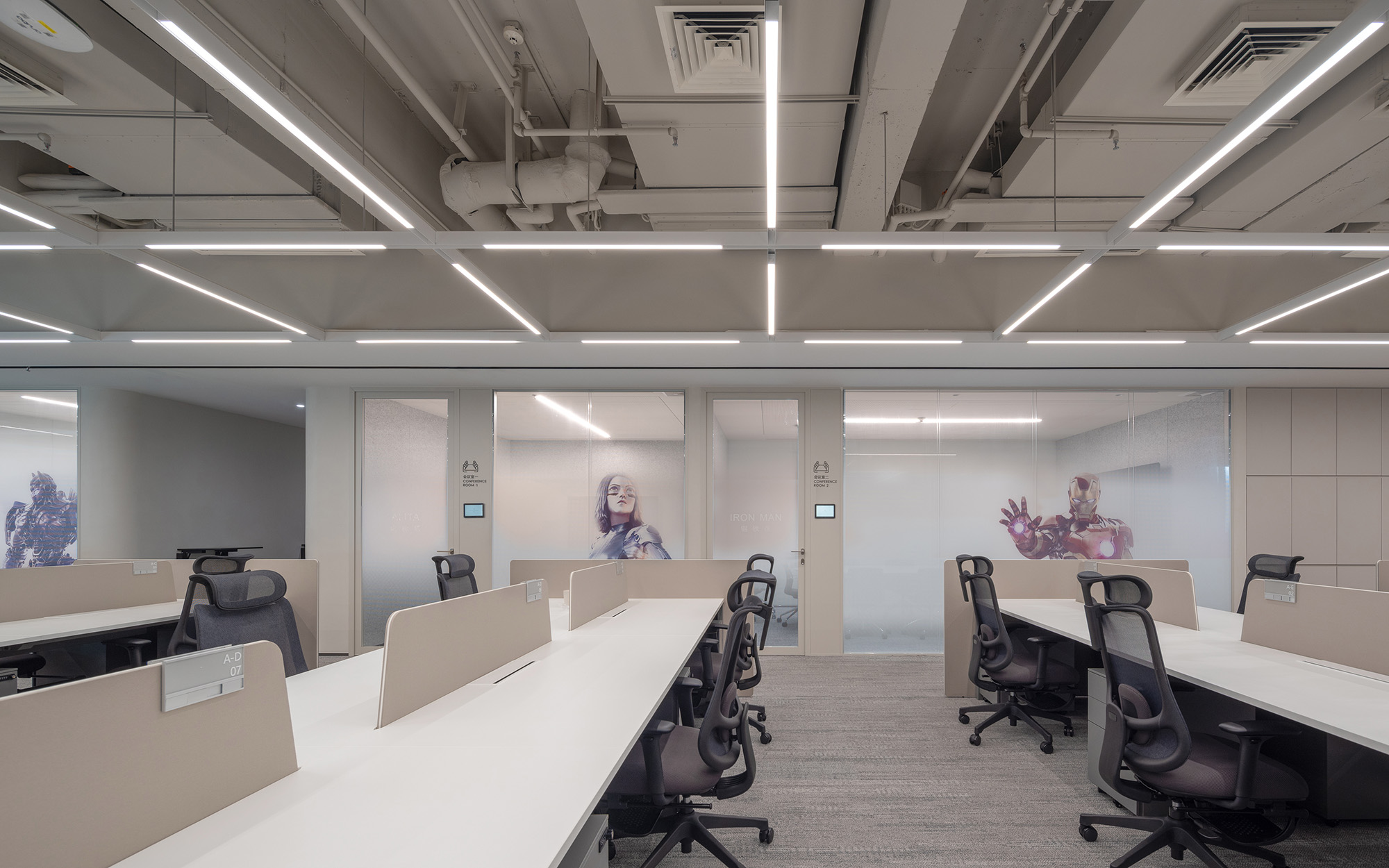 如果说前面的主接待区域是宏大的叙事与宣言,那么办公区域和穿插的辅助功能区,则进入了 “漫游” 阶段。