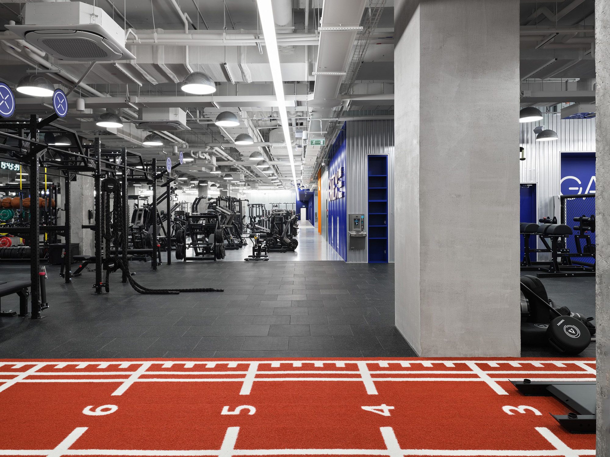 · 功能区:训练区、开放式健身房以及休闲节点,全部融入建筑的“肌体”之中——标识与家具都是内嵌式的,而非附加在上面。