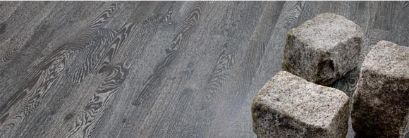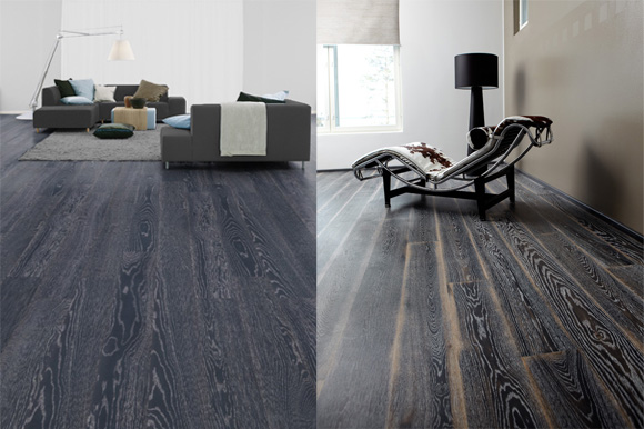 单拼黑色石磨橡木:该花色表面着色黑色,然后进行磨旧、拉绒、上白色油等处理,经处理后加强了树种的纹理。仿旧处理的地板增强了地板的视觉效果,使其充满动感。此款为设计师推荐款式,适用于空间较大的房间 。
