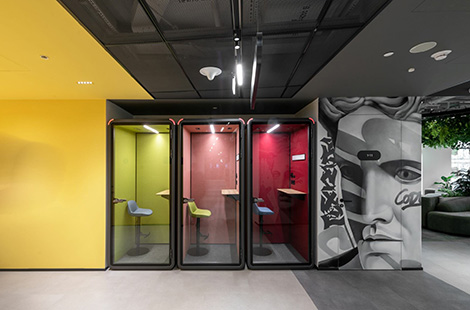 办公地毯、居家氛围、吸音毛毡、懒人沙发、阶梯座、车厢卡座、绿植、图形设计、书写墙、电话亭/电话间、玻璃隔断