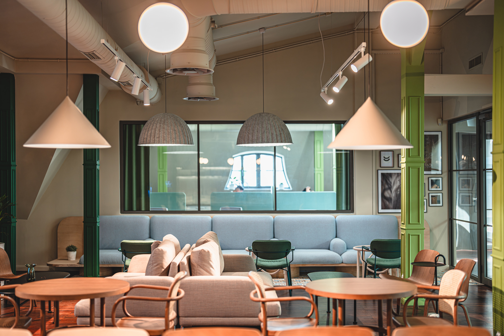 俯瞰地标性约维塔大楼与壮丽波罗海的大幅窗景,配以天空蓝的高挑天花板,以及极具前瞻性的可持续设计哲学,设计团队构筑了波兹南独一无二的联合办公场域。