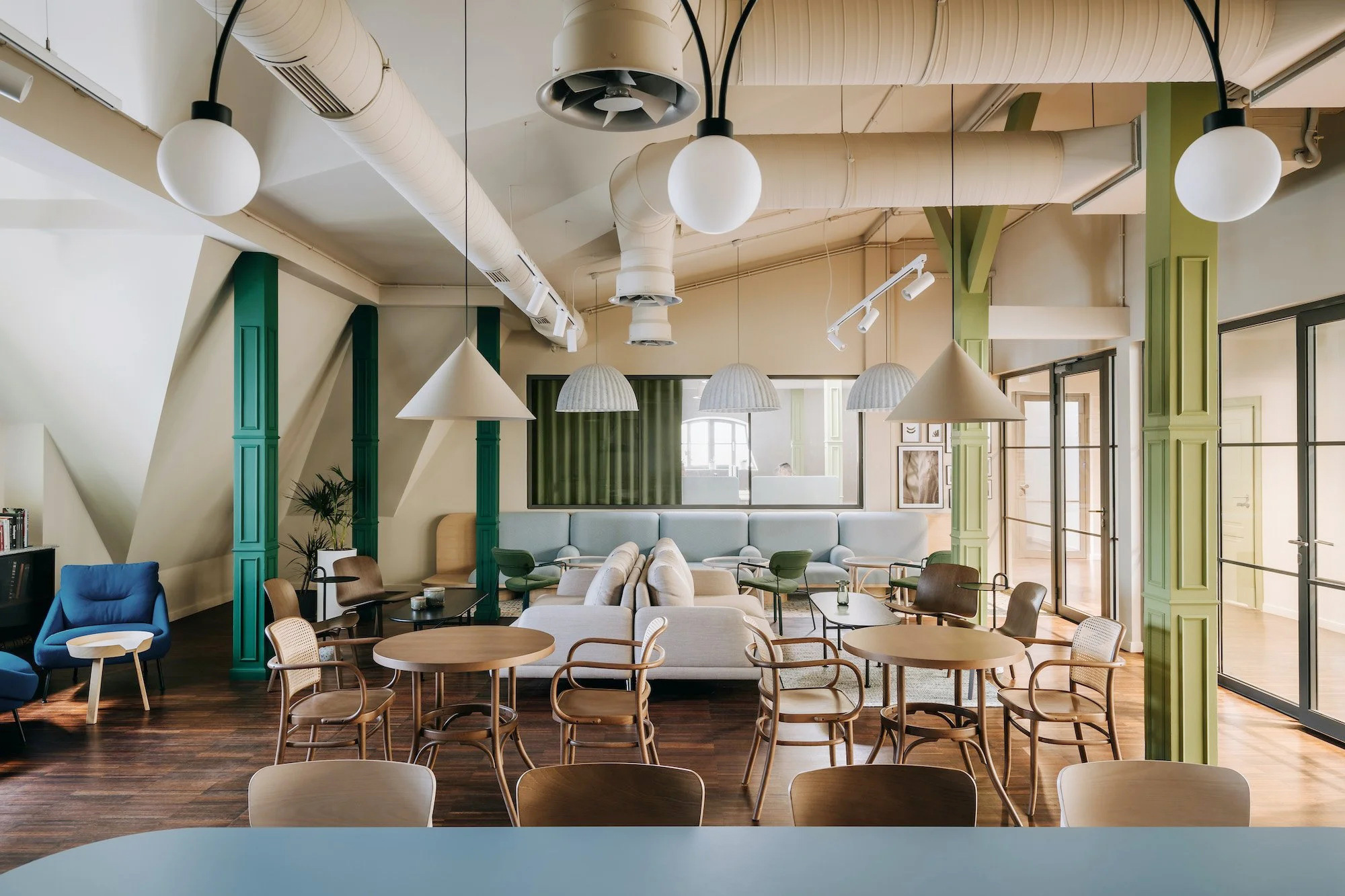 坐落于波兹南历史建筑群中的Concordia 设计大厦,其前身是建于1910年的印刷厂老建筑(曾承印《波兹南日报》等出版物),经2010年修缮后改造为商业与创意中心。如今,Bidermann+Wide设计团队为其开启全新篇章——将顶部两层改造为服务式联合办公空间。