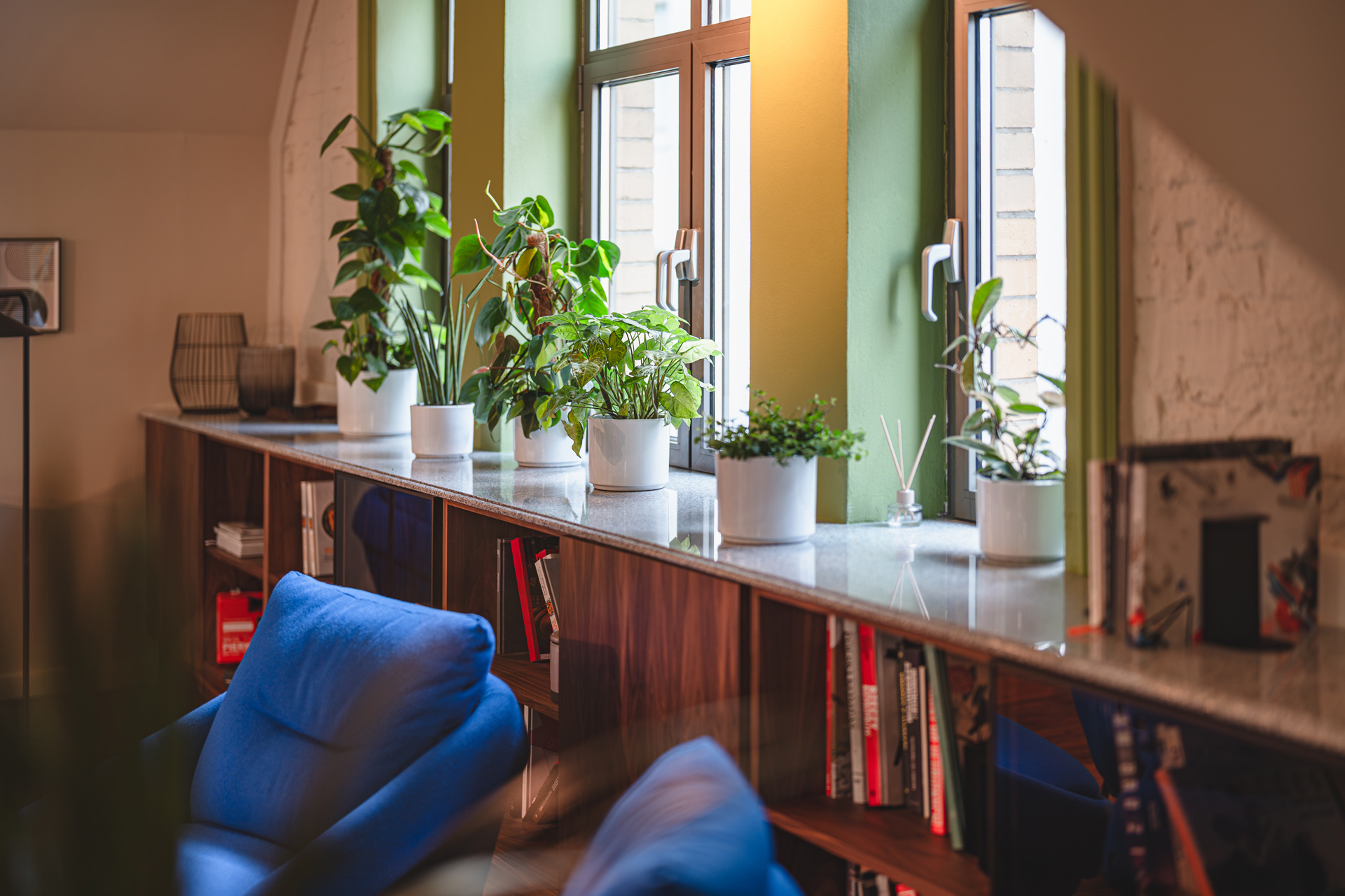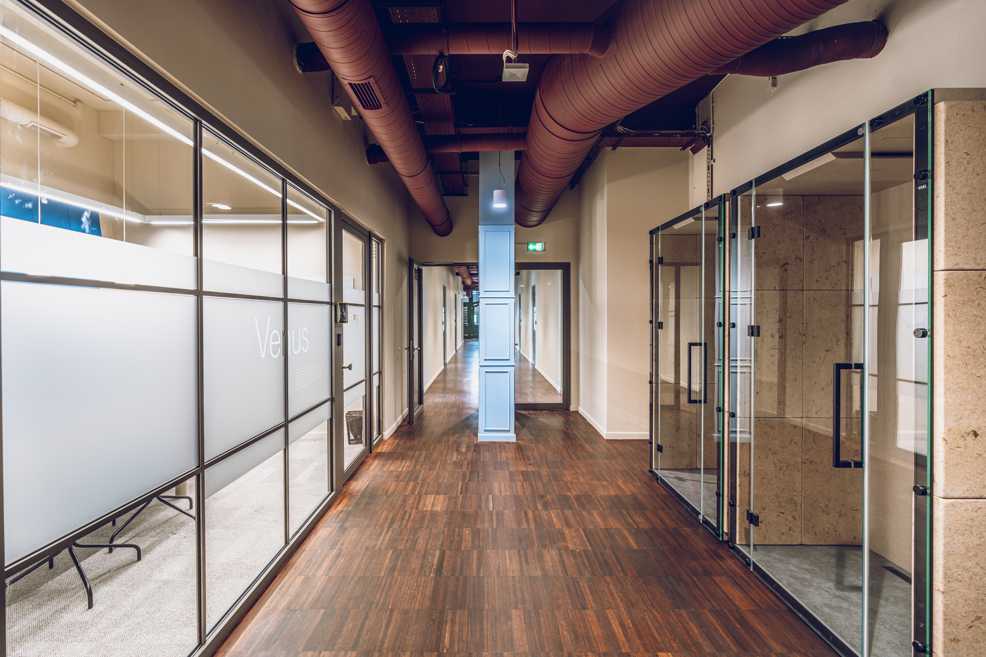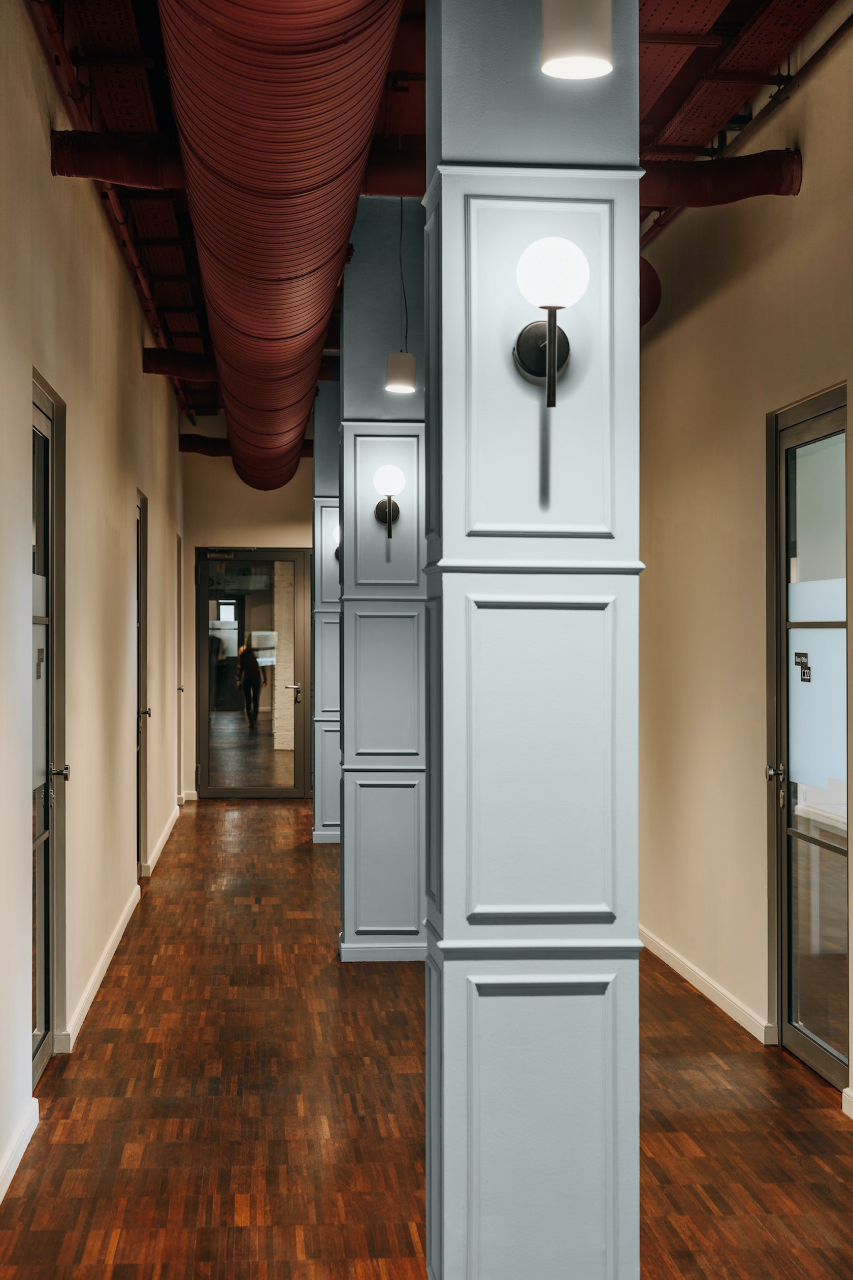 若忽视光线与声音管理,便难以谈及优质的工作环境。所有办公区域均采用配备自然光感应器的线性灯具——根据室外光照强度,灯具会自动调节输出亮度。如此一来,办公桌面始终能获得均匀照明,且即使阳光强烈时,桌面上反射的人造光线也不会产生眩光。这种解决方案还能显著降低能耗。